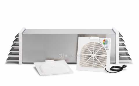 Le ventilateur en aluminium est silencieux et robuste, grâce à ses roulements à billes qui garantissent une longue durée de vie. La minuterie intégrée permet un temps de séchage de 2 à 48 heures et dispose également d'une fonction de maintenance. Le système de flux d'air horizontal améliore l'efficacité et protège le produit à sécher.