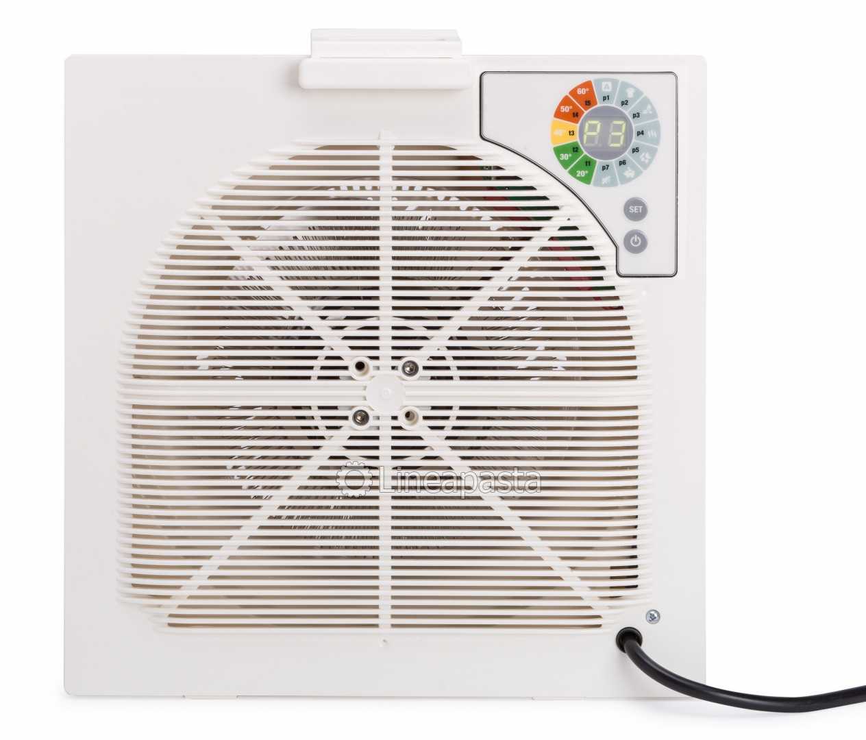 Le ventilateur en aluminium est silencieux et robuste, grâce à ses roulements à billes qui garantissent une longue durée de vie. La minuterie intégrée permet un temps de séchage de 2 à 48 heures et dispose également d'une fonction de maintenance. Le système de flux d'air horizontal améliore l'efficacité et protège le produit à sécher.