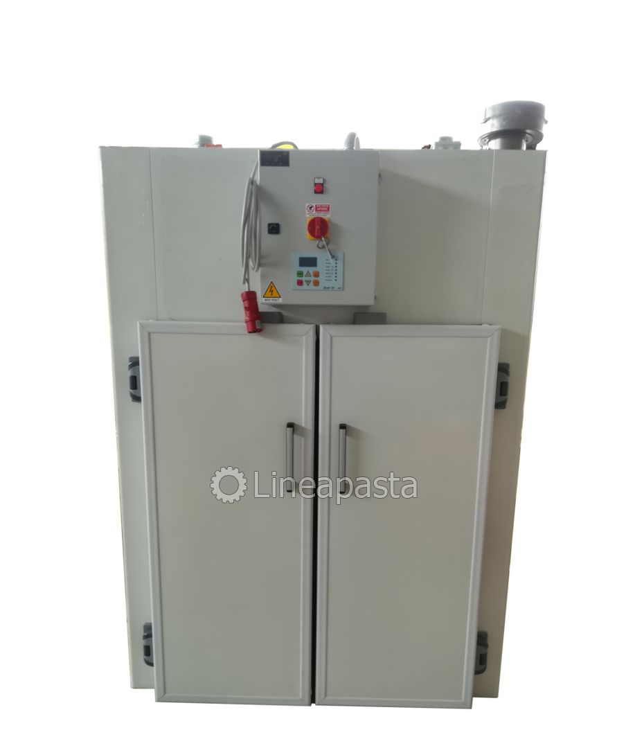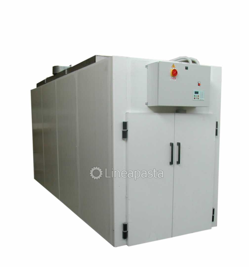 Le séchoir est équipé, au choix, de huit chariots à roulettes pivotantes et de 200 cadres en bois pour les pâtes courtes, ou huit chariots à tiges pour le séchage des pâtes longues.