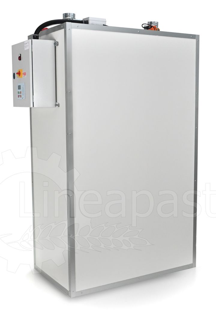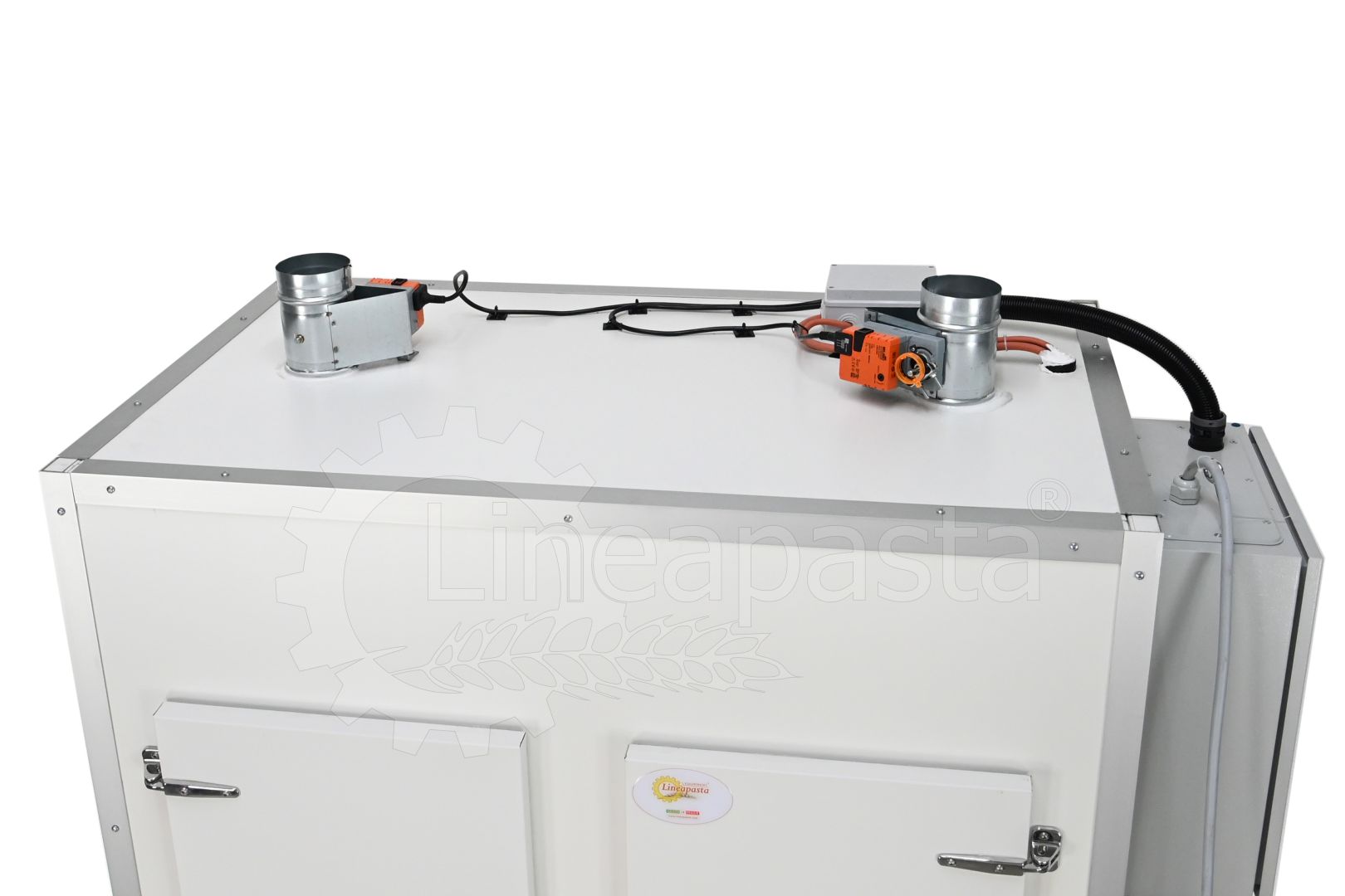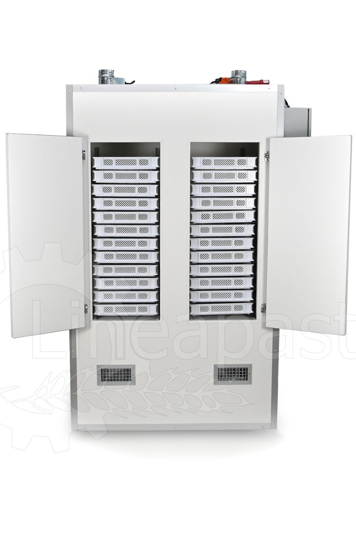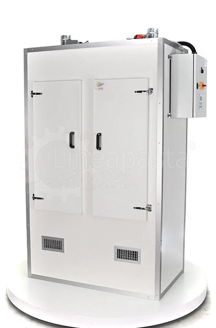L'EC 24 est un séchoir à pâtes fraîches capable de sécher les pâtes fraîches et est équipé d'un contrôle de l'humidité. Il se compose d'une armoire de séchage à l'intérieur de laquelle se trouve un support pouvant contenir jusqu'à 24 bacs percés cm 60x40x7h en plastique, 12 de chaque côté. Le tableau de commande vous permet de modifier les paramètres de température et d'humidité pour chaque cycle du programme de séchage; il est également possible de mémoriser des programmes personnalisés à utiliser en fonction des différents besoins de séchage. 7 recettes de base sont déjà installées dans le séchoir (pour les pâtes à base de semoule remoulée et d'eau) pour les formats suivants: maccheroni/penne, fusilli, conchiglie/paccheri rigati, orecchiette, spaghetti, caserecce et nids.