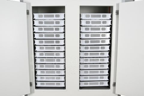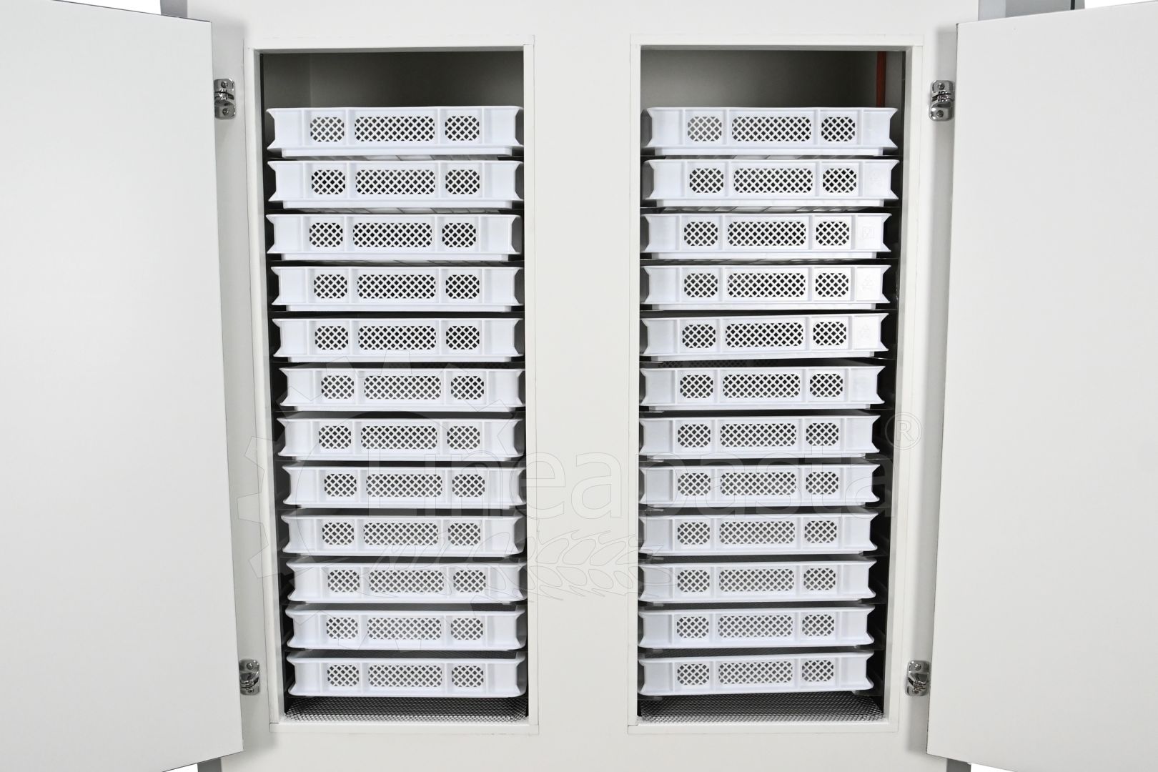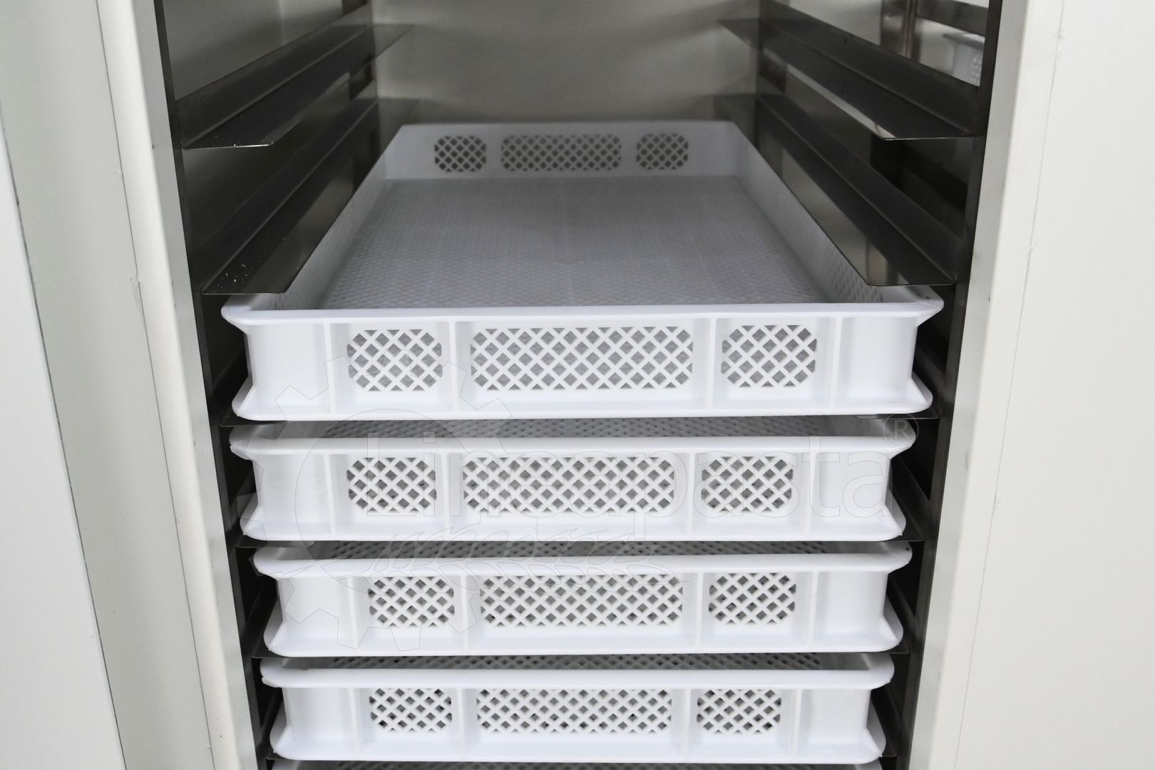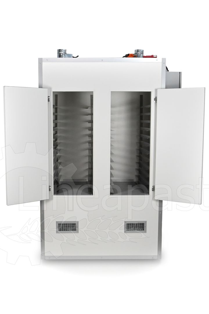 L'EC 24 est un séchoir à pâtes fraîches capable de sécher les pâtes fraîches et est équipé d'un contrôle de l'humidité. Il se compose d'une armoire de séchage à l'intérieur de laquelle se trouve un support pouvant contenir jusqu'à 24 bacs percés cm 60x40x7h en plastique, 12 de chaque côté. Le tableau de commande vous permet de modifier les paramètres de température et d'humidité pour chaque cycle du programme de séchage; il est également possible de mémoriser des programmes personnalisés à utiliser en fonction des différents besoins de séchage. 7 recettes de base sont déjà installées dans le séchoir (pour les pâtes à base de semoule remoulée et d'eau) pour les formats suivants: maccheroni/penne, fusilli, conchiglie/paccheri rigati, orecchiette, spaghetti, caserecce et nids.