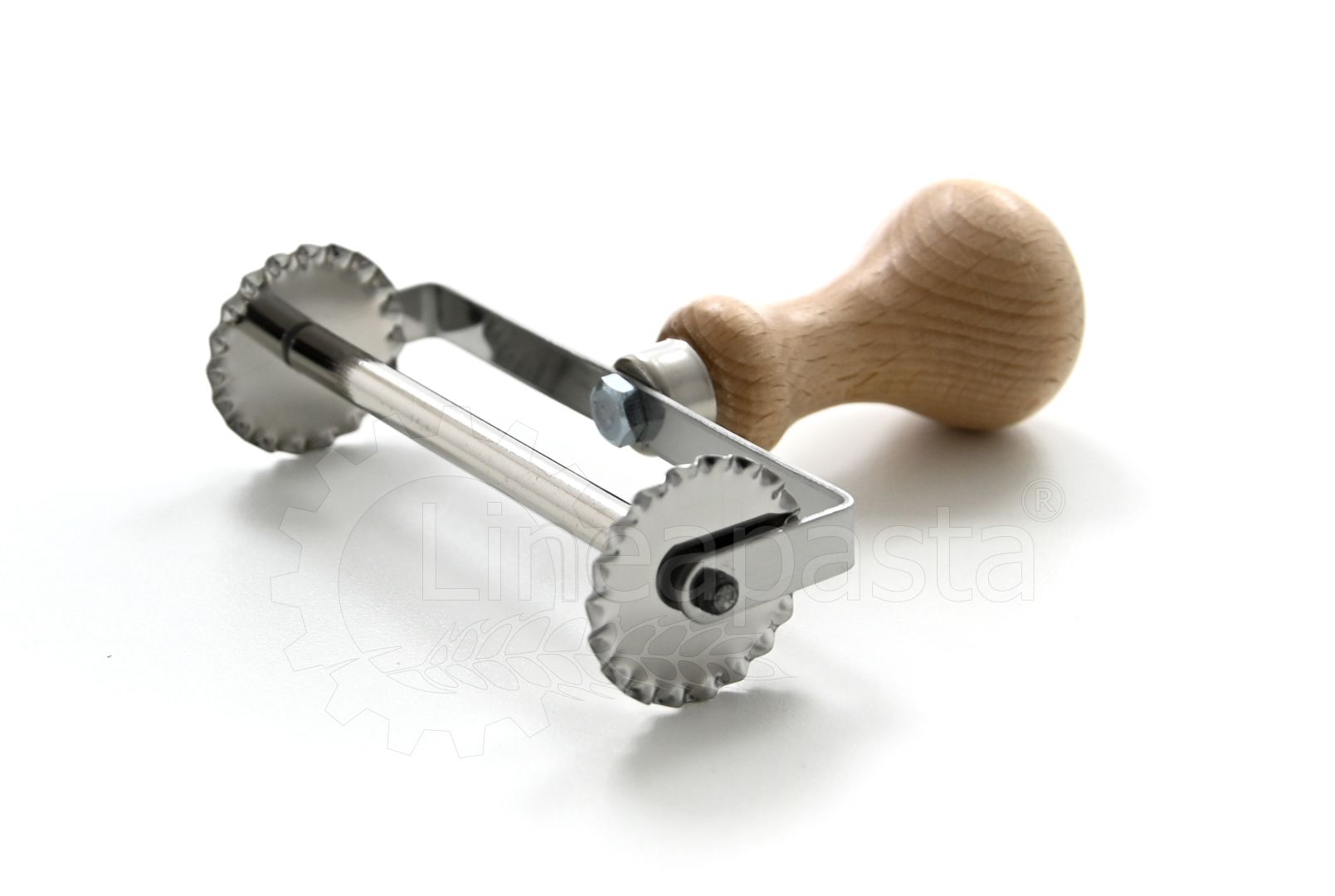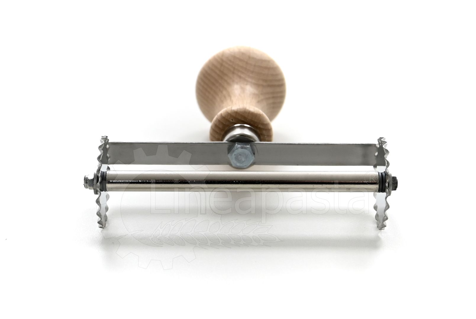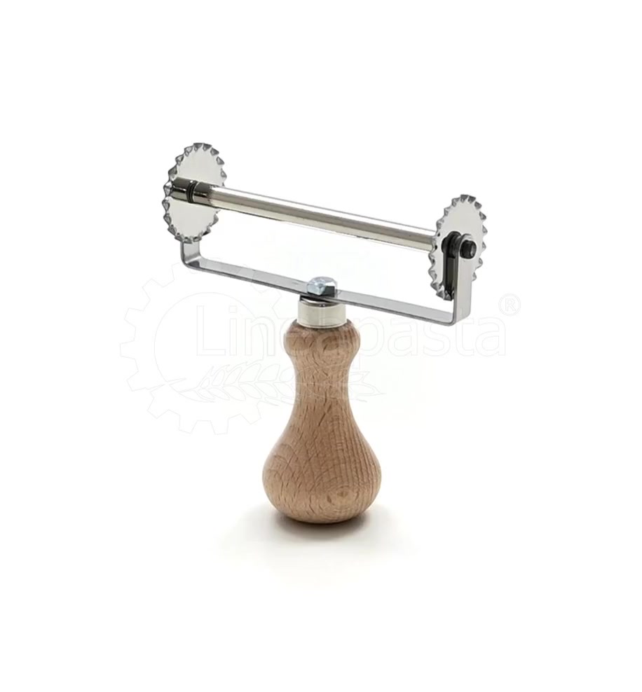 Coupe-pâtes spécialement conçu pour la préparation des cannellonis. Cet outil est équipé d'un manche en bois pratique et de deux lames dentelées en acier inoxydable, placées à une distance de 106 mm l'une de l'autre. Ce coupe-pâtes convient aussi bien à un usage domestique que professionnel.