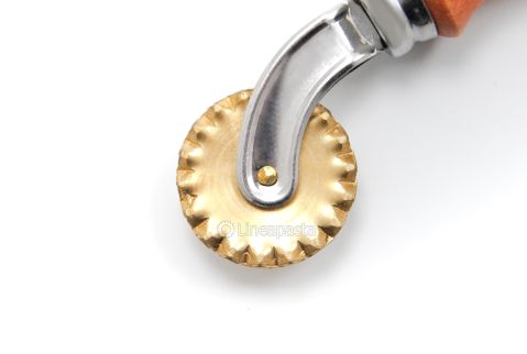 Coupe-pâtes à roulettes pratique et robuste, idéal pour couper la pâte feuilletée et la pâte. Cet outil de fabrication artisanale est conçu à la fois pour un usage domestique et professionnel, il se compose d’une seule lame dentée de 35 mm, d’une poignée en bois de hêtre et d’une fourche en acier qui unit les deux parties.
