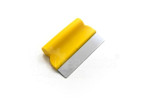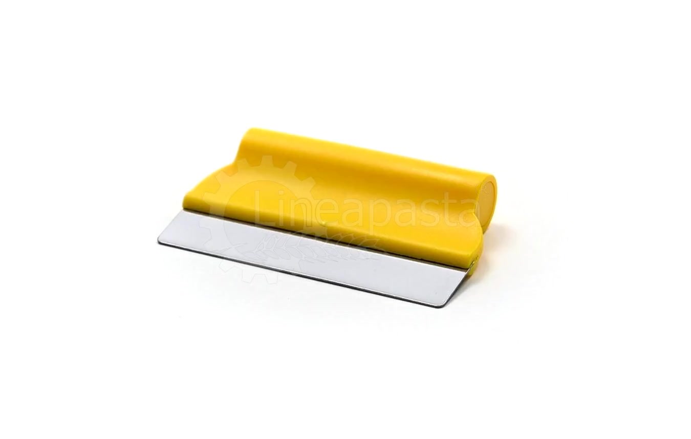 Grattoir coupe-pâte en acier inoxydable de 75 mm de large, équipé d'un manche en nylon confortable, robuste et résistant. Cet outil, adapté aussi bien à un usage domestique que professionnel, est conçu pour couper manuellement la pâte extrudée ou pour nettoyer le plan de travail pendant la phase de production de pâte pour pâtes, pizza ou desserts.