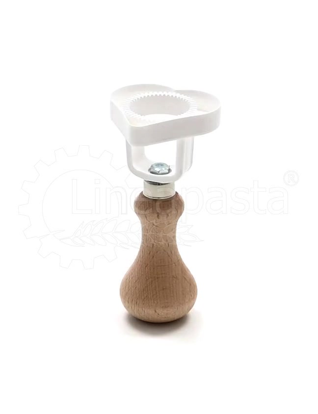 Moule à raviolis farcis, fourni avec un manche en bois pratique et réalisé en derlin. Le moule est idéal aussi bien pour un usage professionnel que domestique, il permet de découper proprement la pâte en forme de cœur (diamètre 55 mm) et est équipé d'une couronne interne qui permet de fermer hermétiquement la garniture.
