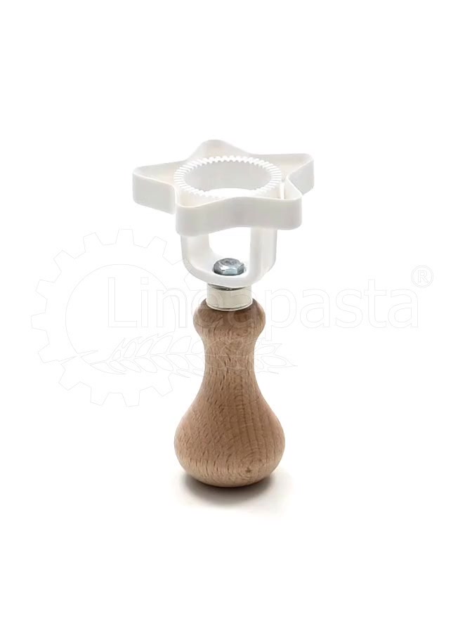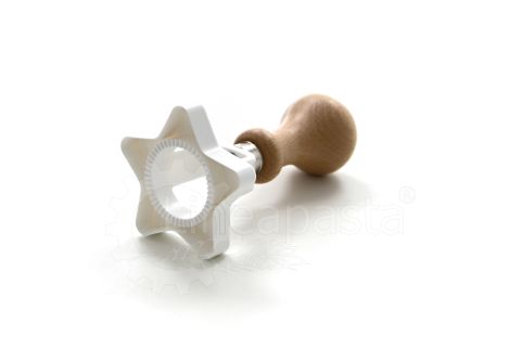 Moule à raviolis farcis, en derlin et équipé d'un confortable manche en bois. Le moule convient aussi bien à un usage domestique que professionnel, il permet de découper la pâte avec précision en forme d'étoile (diamètre 64 mm) et est équipé d'une couronne interne, qui permet de fermer hermétiquement la garniture.