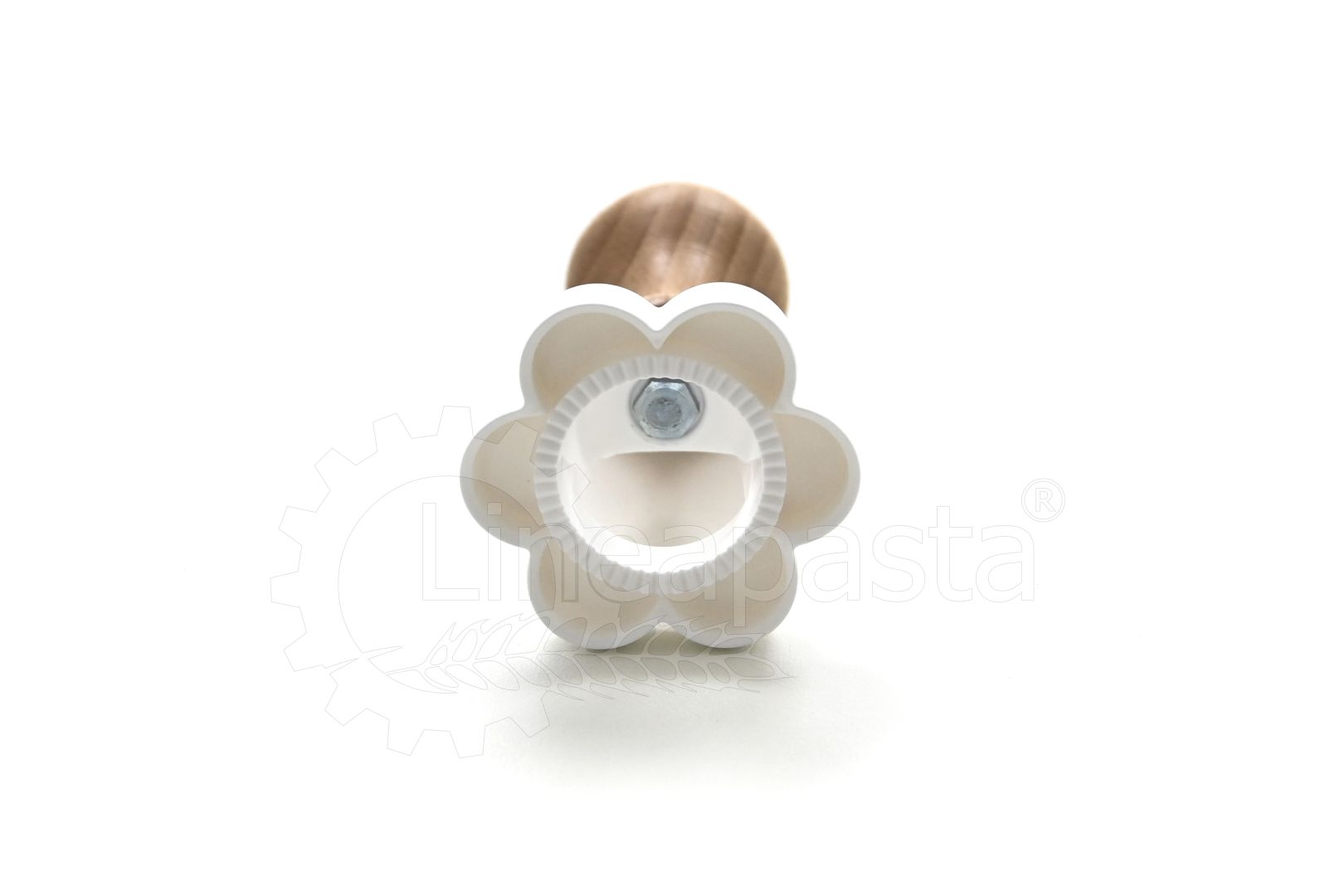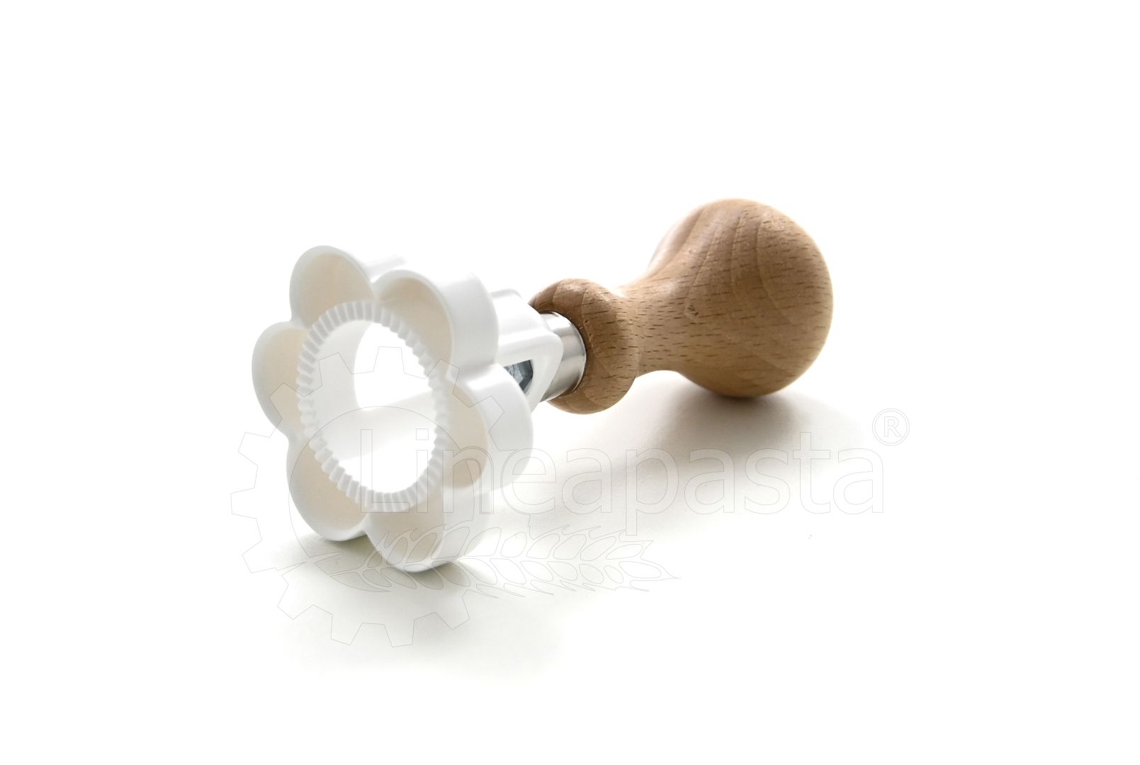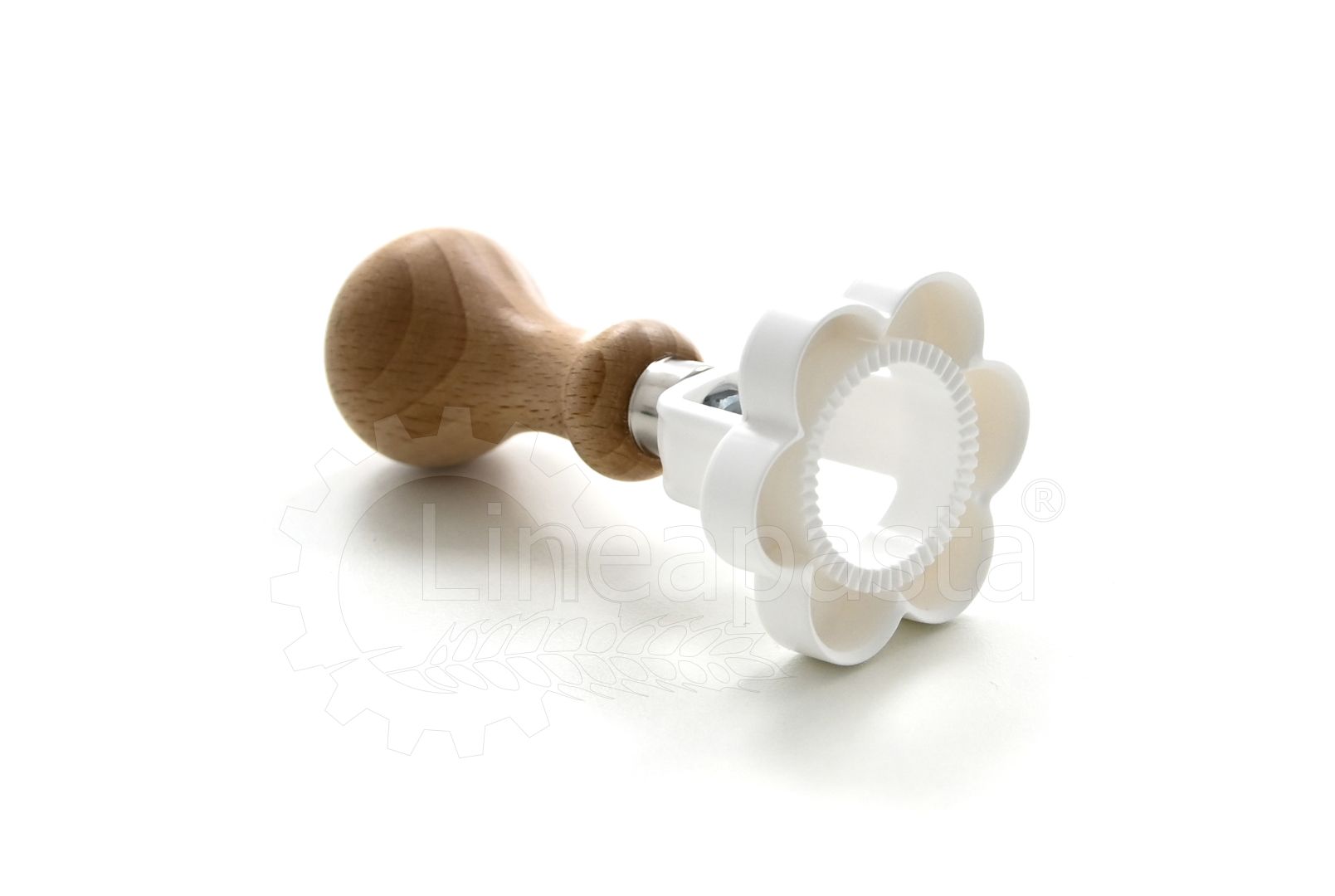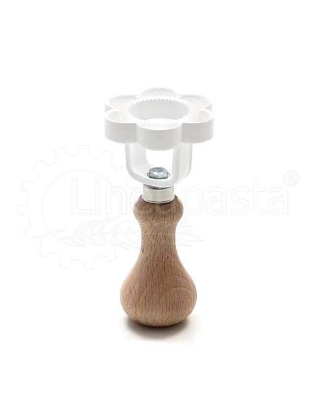 Moule pour raviolis farcis en matière plastique (derlin) et équipé d'un pratique manche en bois. Le moule est équipé d'une couronne interne qui permet de fermer hermétiquement la garniture, tandis que la partie coupante permet de découper la pâte en forme de fleur (diamètre 57 mm). Ce moule à raviolis convient aussi bien à un usage domestique que professionnel.