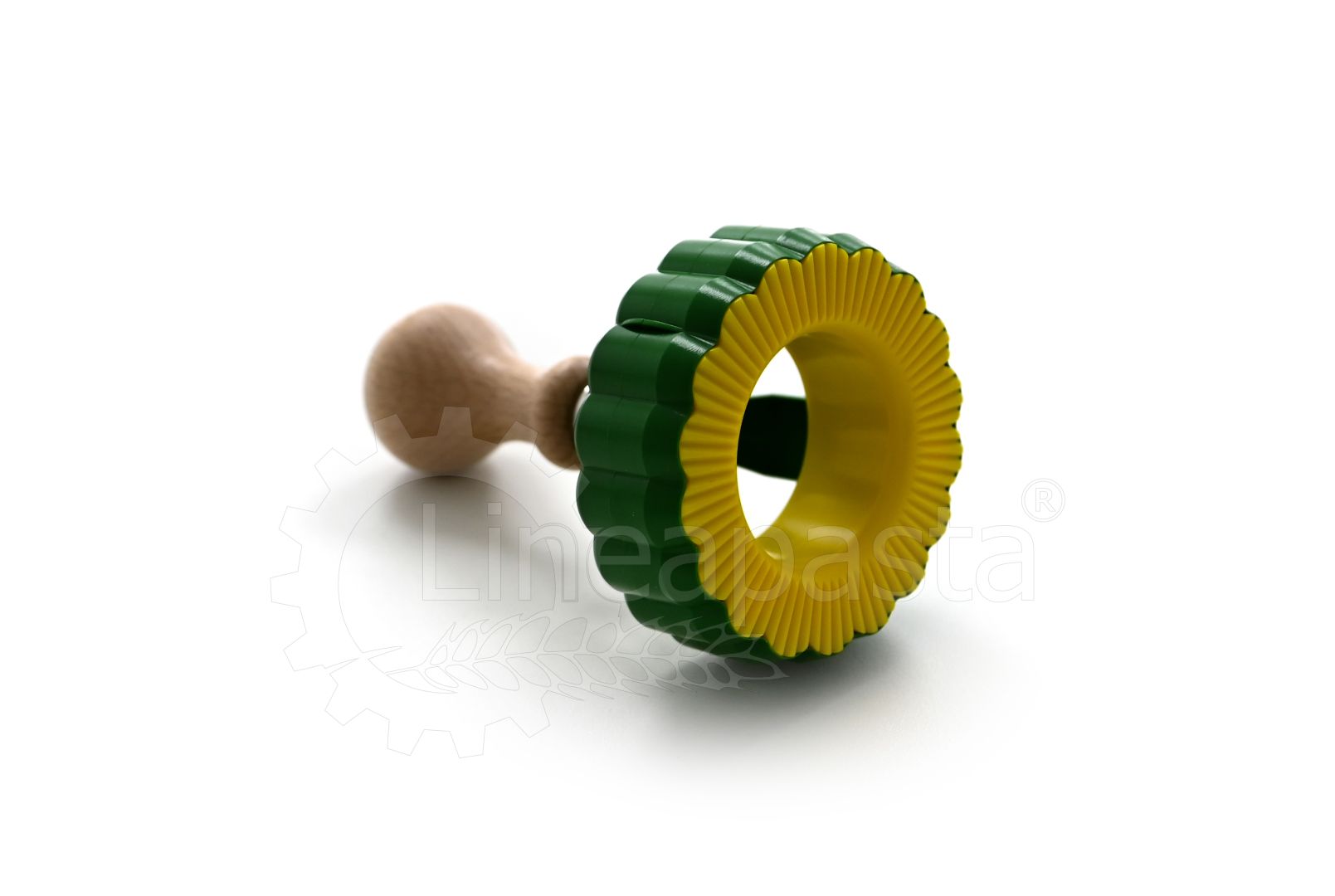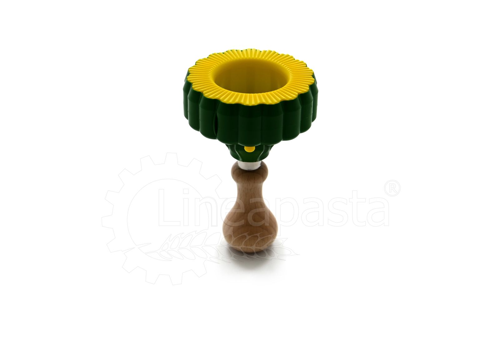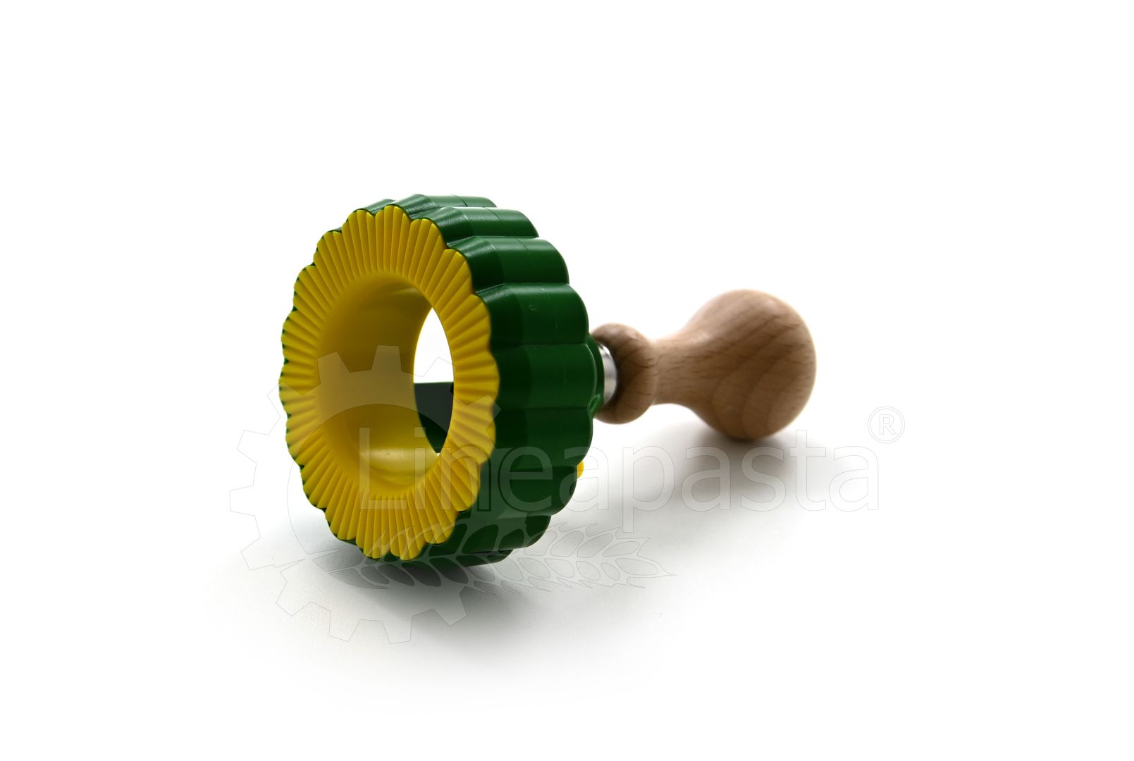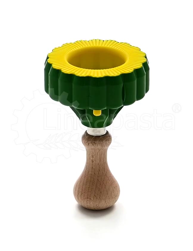 Moule à raviolis fourrés en forme de marguerite, d'un diamètre de 90 mm. Fabriqué en matière plastique (derlin) et équipé d'un manche en bois pratique, ce moule à raviolis est doté d'une structure avec un mécanisme à ressort qui permet la fermeture hermétique de la garniture. Adapté aussi bien à un usage domestique que professionnel, il peut également être utilisé en pâtisserie ou pour réaliser des raviolis en forme de croissant.
