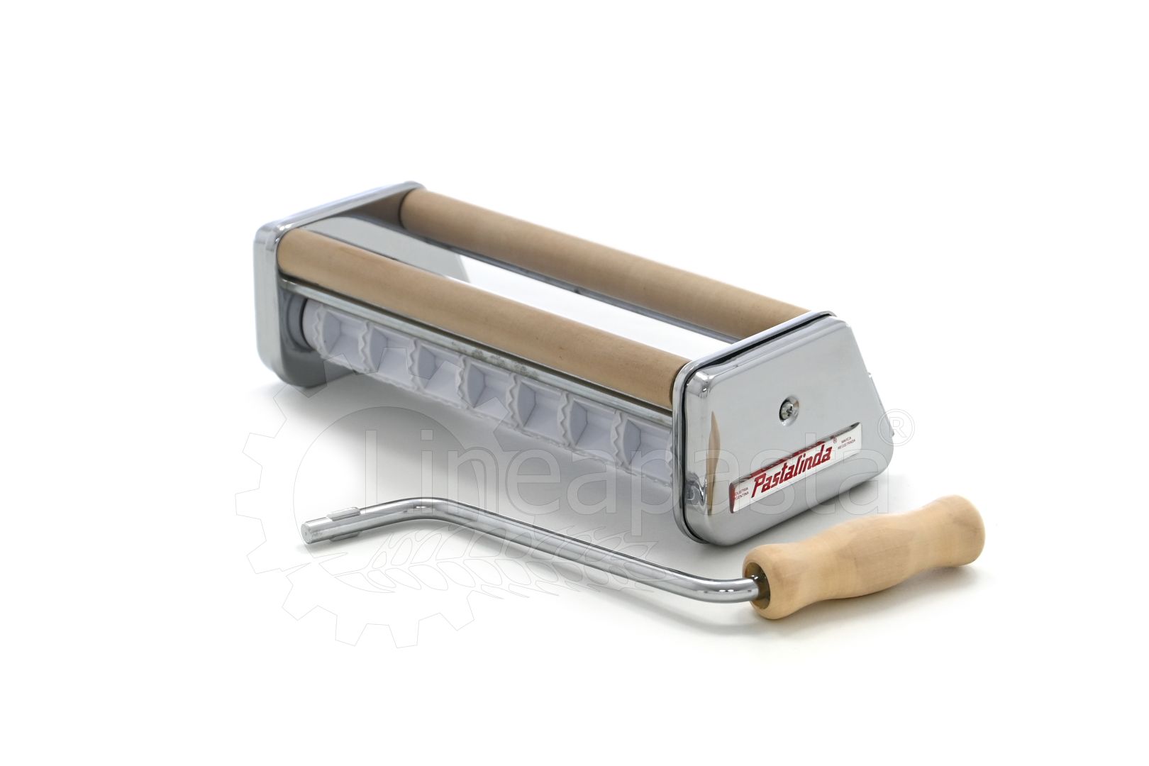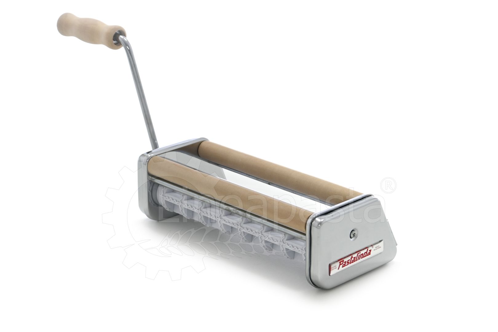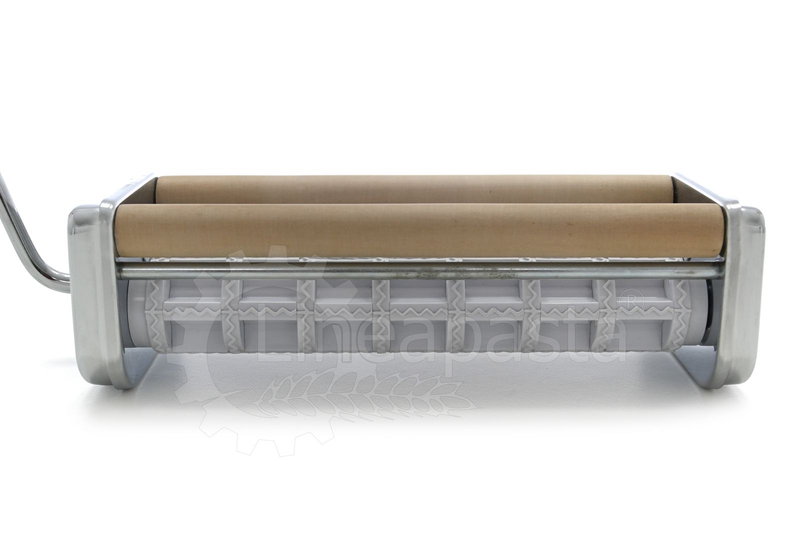 Accessorio per produrre ravioli quadrati ripieni di 2,5 cm per la macchina sfogliatrice Pastalinda Classica 260. Con questo accessorio, puoi creare facilmente 7 ravioli in una sola passata, nella larghezza della sfoglia, e sigillarli automaticamente.