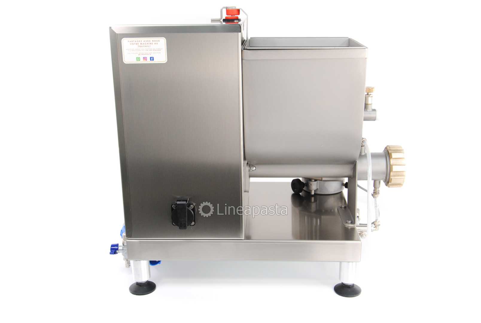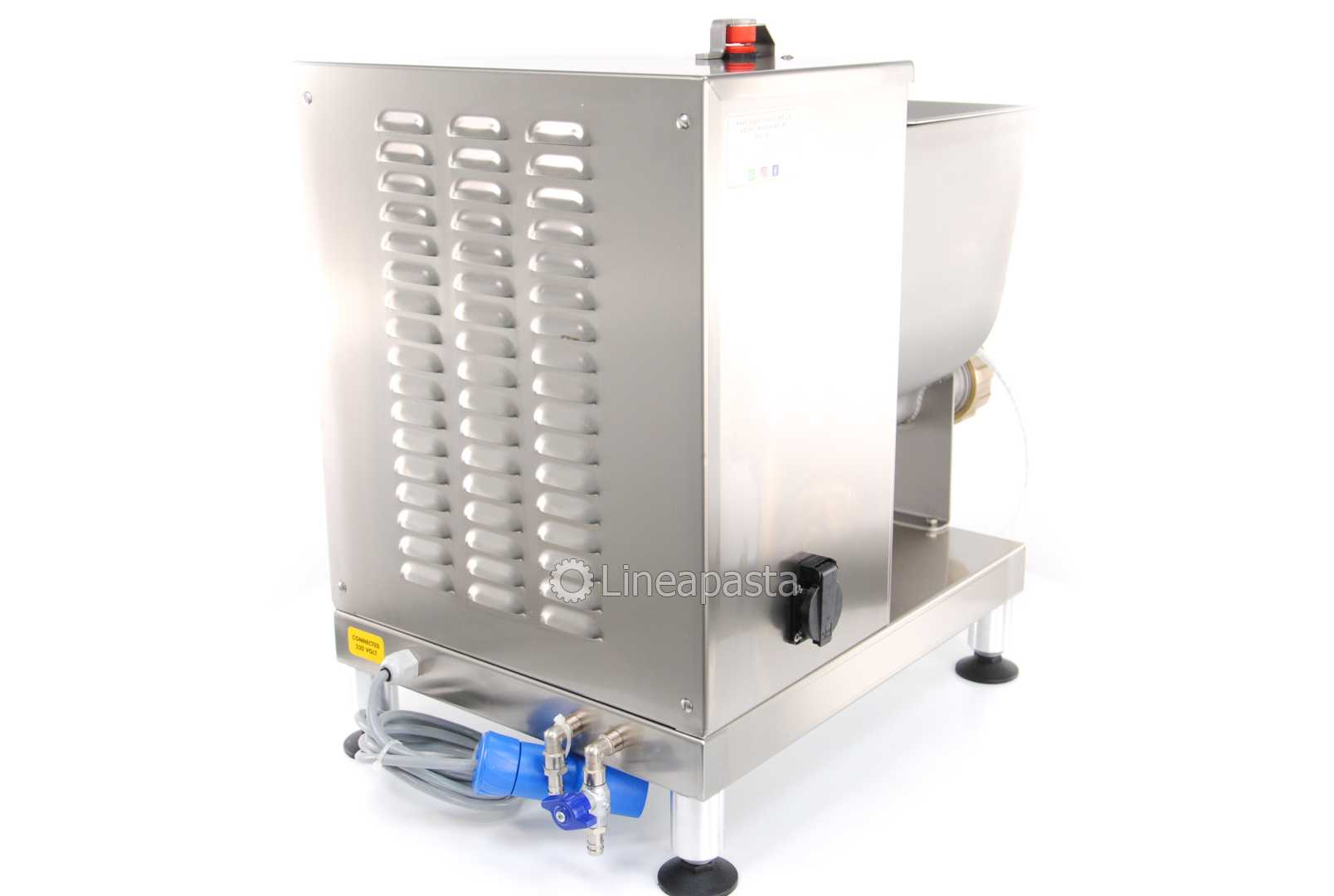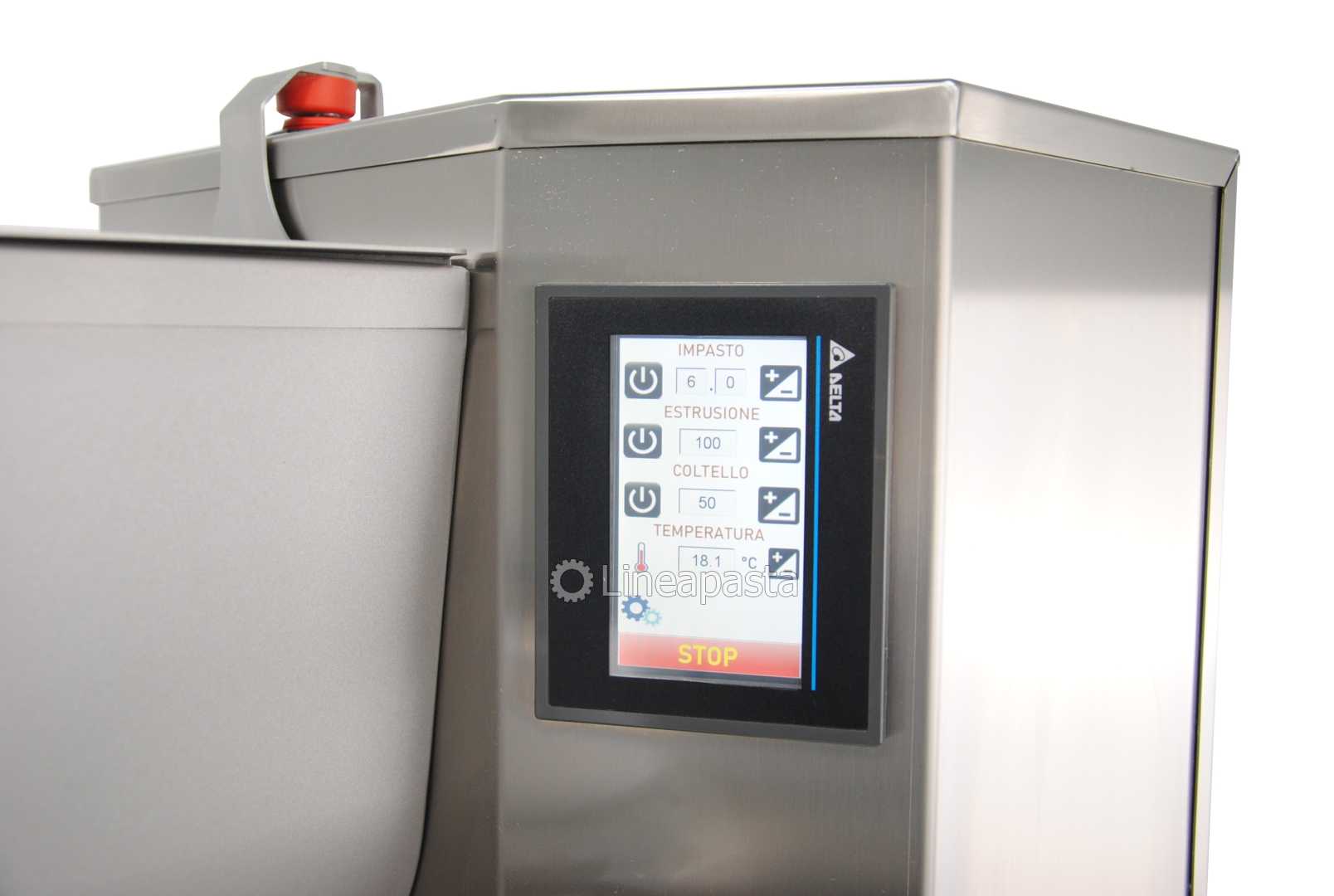 La macchina per pasta fresca PS 4 è una macchina pasta ideale per la ristorazione ed i piccoli negozi. È dotata di un pannello di controllo digitale touch screen all'avanguardia. Grazie al sistema di raffreddamento ad acqua che mantiene bassa la temperatura del cilindro di estrusione, è possibile estrudere per molte ore consecutive senza doversi fermare per attenderne il raffreddamento. Possiede una struttura molto robusta ed una vasca impastatrice in acciaio inox Aisi 304. La macchina per pasta PS 4 ha una capacità d'impasto di 4 Kg, ed è ideale per la produzione di pasta lunga, pasta corta e penne. È possibile abbinare il carrello in acciaio inox su ruote che permette di spostare comodamente la macchina. Grandissima affidabilità grazie al nuovo sistema di sicurezza dotato di sensore magnetico di prossimità non suscettibile alle rotture causate alle forze meccaniche di continua chiusura e apertura della vasca. La macchina è dotata di sistema di controllo touch screen con la possibilità di caricare e personalizzare ricette in base alle proprie esigenze di produzione, personalizzando la velocità di estrusione, la velocità del coltello e la temperatura del cilindro di estrusione.