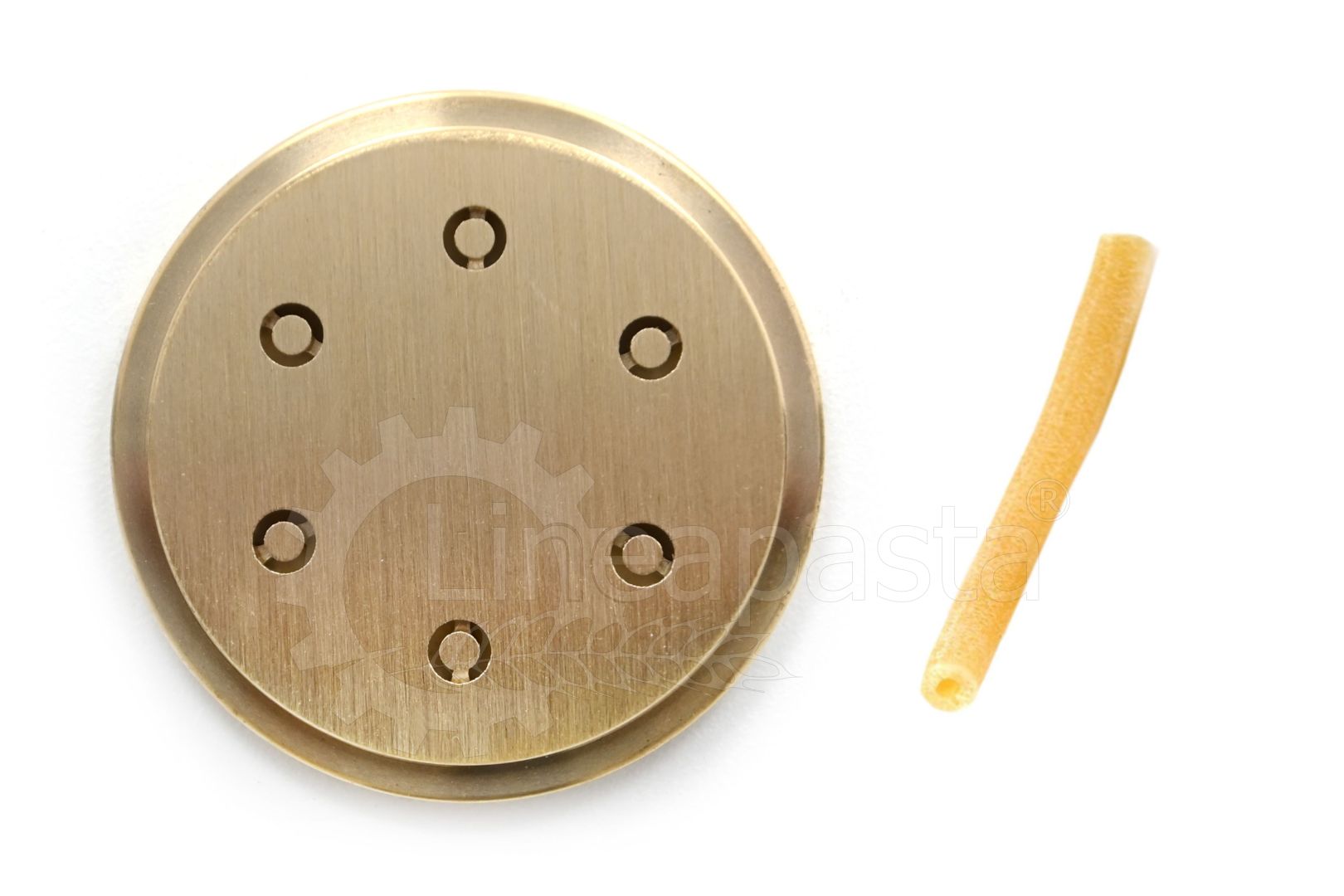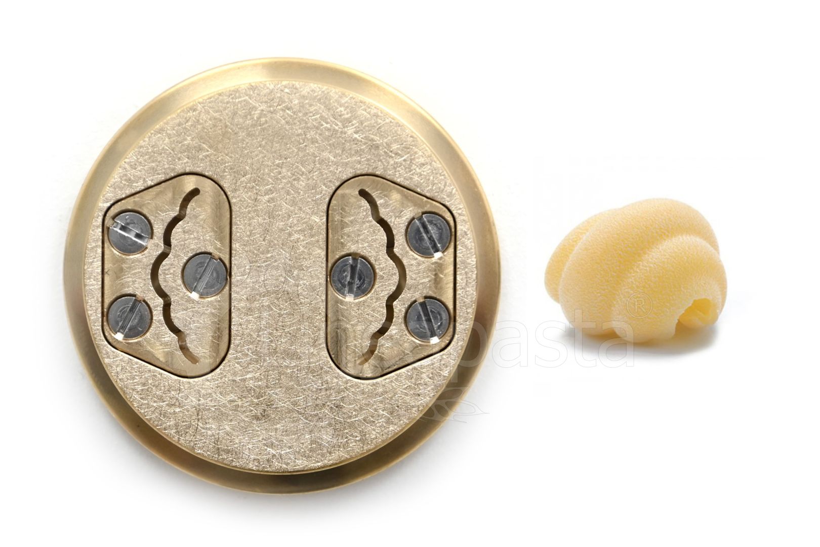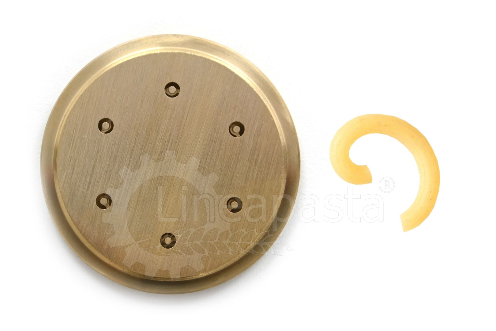 Pasta sfoglia 135 mm con spessore regolabile - Bigoli Ø3 mm - Bucatini Ø4 mm - Canestrini Ø16 mm - Cannellone Ø25 mm - Capelli d'angelo Ø1 mm - Caserecce 9x5 mm - Cavatappi/Amori 7,6 mm (inserti in teflon) - Conchiglie rigate 32,5 mm - Creste di gallo rigate 7 mm - Cuore rigato Ø14 mm - Curvi lisci Ø8 mm - Curvi rigati Ø8 mm - Fettuccine 7,5 mm - Fiore di loto Ø20 mm - Fusilli 2P 13 mm - Fusilli 3P 9 mm - Fusilloni 5P 20 mm - Gemelli 9 mm - Giglio riccio 11,5 mm - Gnocchetti sardi 19 mm - Gnocchetti sardi 24 mm - Gnocchi Ø12 mm (solo con farina di patata liofilizzata) - Gnocco napoletano 22 mm - Gramigna Ø3,5 mm - Linguine 3x1,6 mm - Linguine 4x1,6 mm - Maccheroni rigati Ø4,8 mm / Ø8,5 mm / Ø15 mm - Orecchiette 22 mm - Pacchero liscio Ø25x1,5 mm - Pappardelle 16 mm - Pappardelle ricce 16 mm - Penne rigate Ø9 mm - Pici Toscani/Spaghettoni Ø4 mm - Radiatori 26 mm - Rechta 1,5x0,6 mm (inserti in teflon) - Ruote rigate 12 mm - Scialatielli 5x3 mm - Spaghetti alla chitarra 2x2 mm - Spaghetti Ø1,5 mm / Ø2 mm - Stella 5 punte Ø20 mm - Tagliatelle 5 mm - Tagliolini 3 mm - Trottola liscia 12 mm - Ziti lisci 8 mm