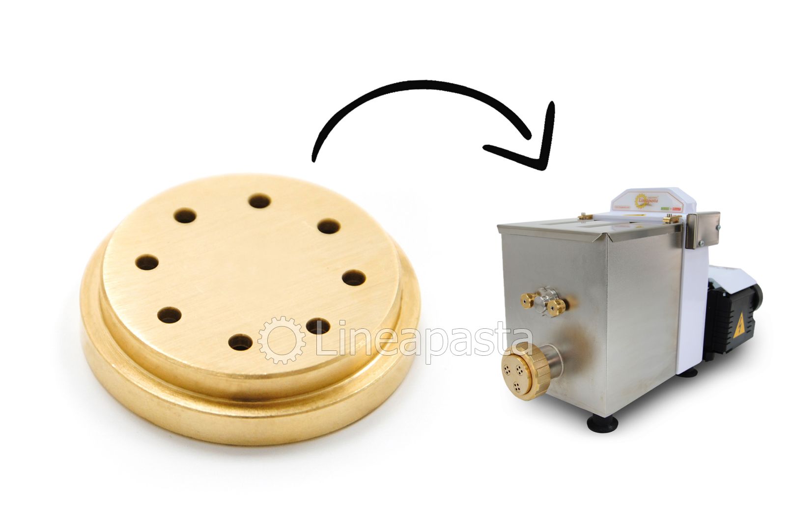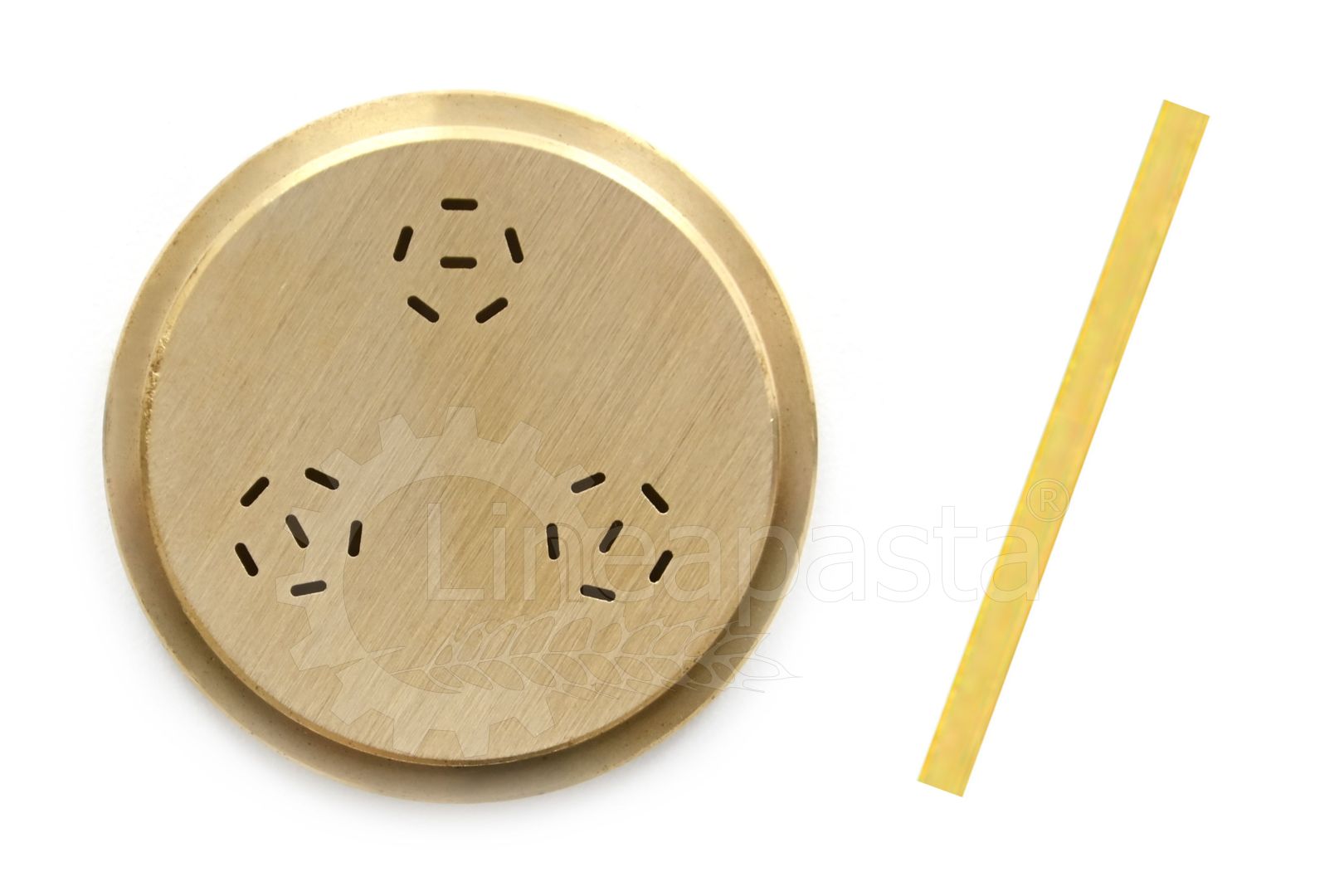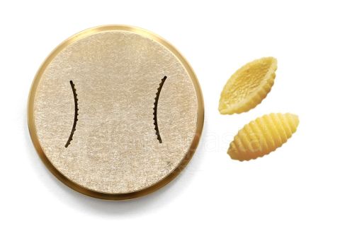 Pasta sfoglia 135 mm con spessore regolabile - Bigoli Ø3 mm - Bucatini Ø4 mm - Canestrini Ø16 mm - Cannellone Ø25 mm - Capelli d'angelo Ø1 mm - Caserecce 9x5 mm - Cavatappi/Amori 7,6 mm (inserti in teflon) - Conchiglie rigate 32,5 mm - Creste di gallo rigate 7 mm - Cuore rigato Ø14 mm - Curvi lisci Ø8 mm - Curvi rigati Ø8 mm - Fettuccine 7,5 mm - Fiore di loto Ø20 mm - Fusilli 2P 13 mm - Fusilli 3P 9 mm - Fusilloni 5P 20 mm - Gemelli 9 mm - Giglio riccio 11,5 mm - Gnocchetti sardi 19 mm - Gnocchetti sardi 24 mm - Gnocchi Ø12 mm (solo con farina di patata liofilizzata) - Gnocco napoletano 22 mm - Gramigna Ø3,5 mm - Linguine 3x1,6 mm - Linguine 4x1,6 mm - Maccheroni rigati Ø4,8 mm / Ø8,5 mm / Ø15 mm - Orecchiette 22 mm - Pacchero liscio Ø25x1,5 mm - Pappardelle 16 mm - Pappardelle ricce 16 mm - Penne rigate Ø9 mm - Pici Toscani/Spaghettoni Ø4 mm - Radiatori 26 mm - Rechta 1,5x0,6 mm (inserti in teflon) - Ruote rigate 12 mm - Scialatielli 5x3 mm - Spaghetti alla chitarra 2x2 mm - Spaghetti Ø1,5 mm / Ø2 mm - Stella 5 punte Ø20 mm - Tagliatelle 5 mm - Tagliolini 3 mm - Trottola liscia 12 mm - Ziti lisci 8 mm