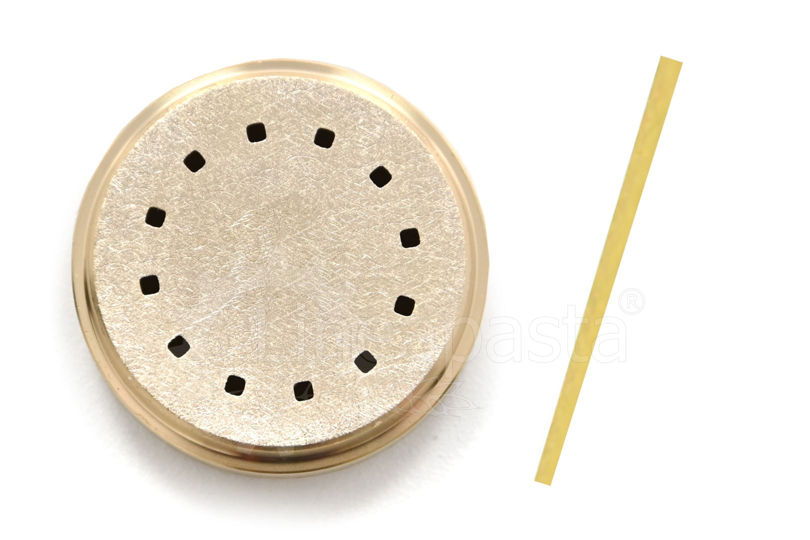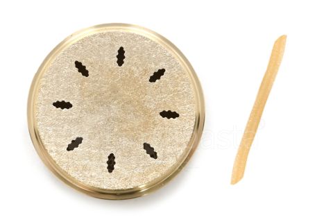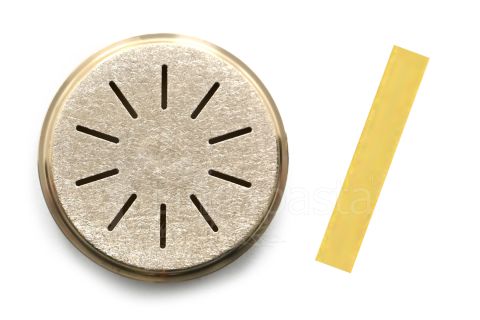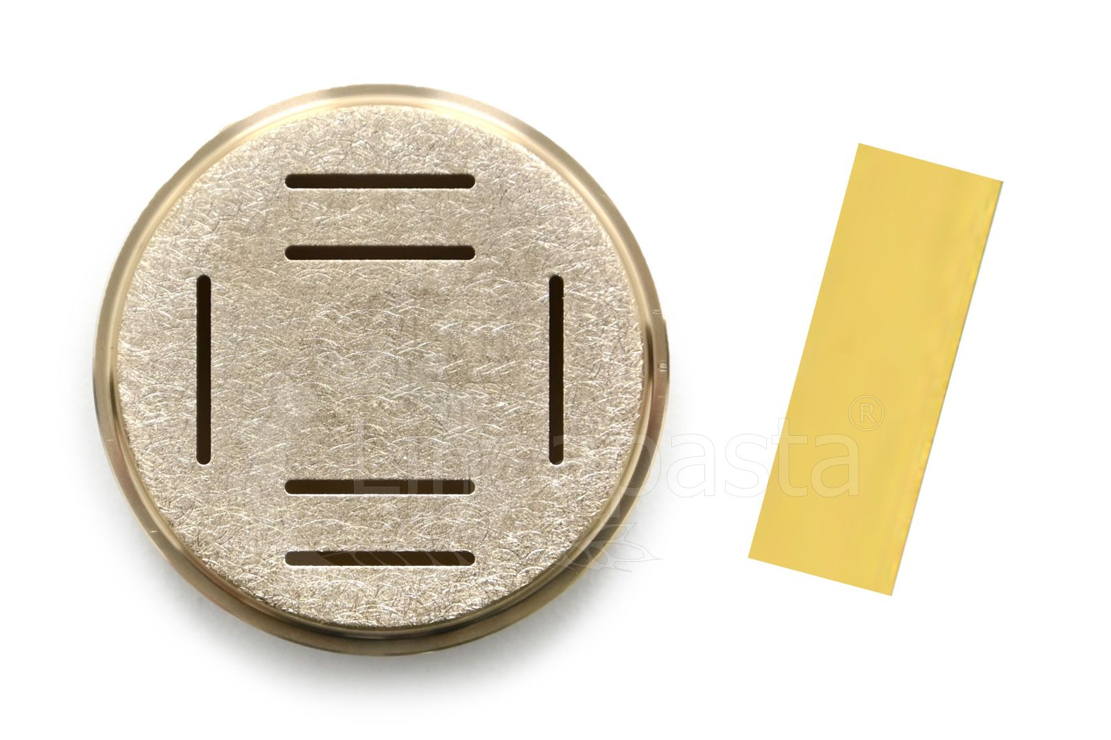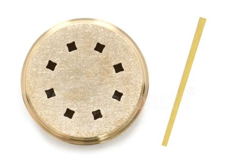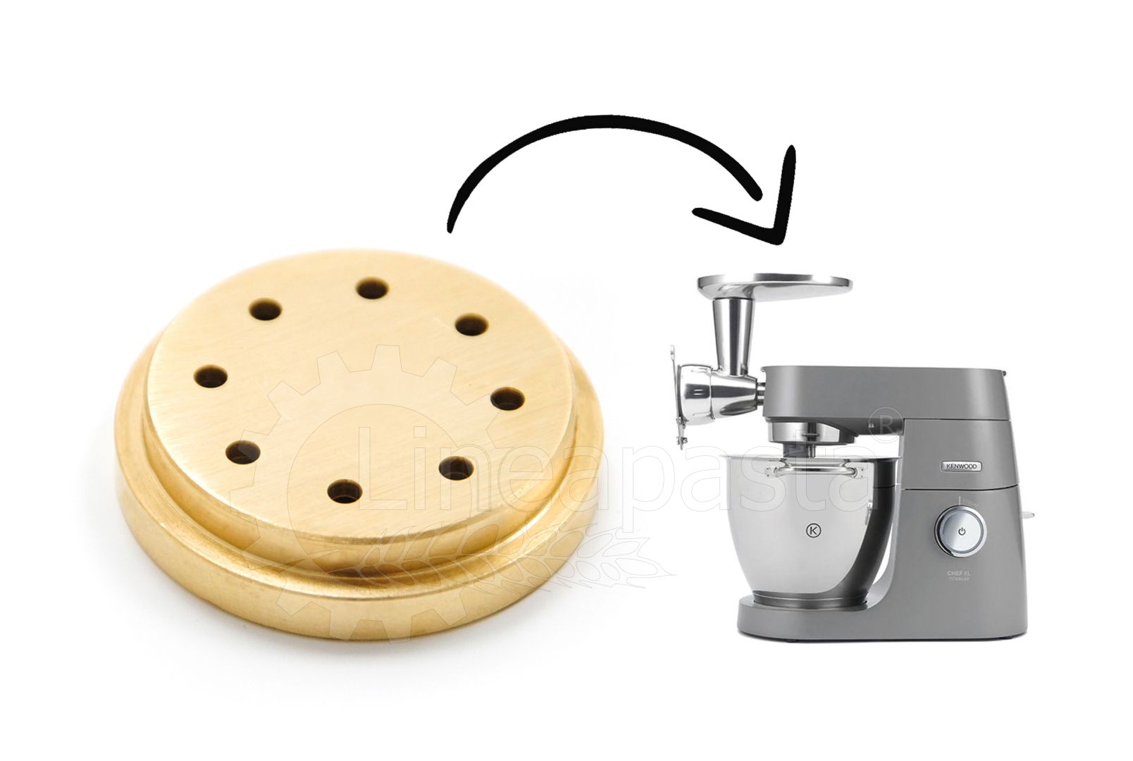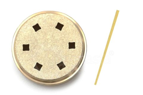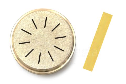 Trafile pasta fresca per l'accessorio torchio Kenwood KAX92.A0ME in ottone-bronzo per la produzione del tipo di pasta a seconda del formato scelto.