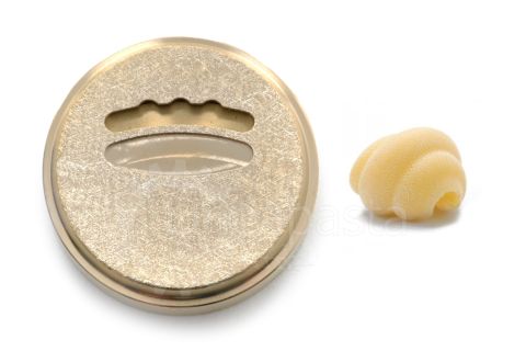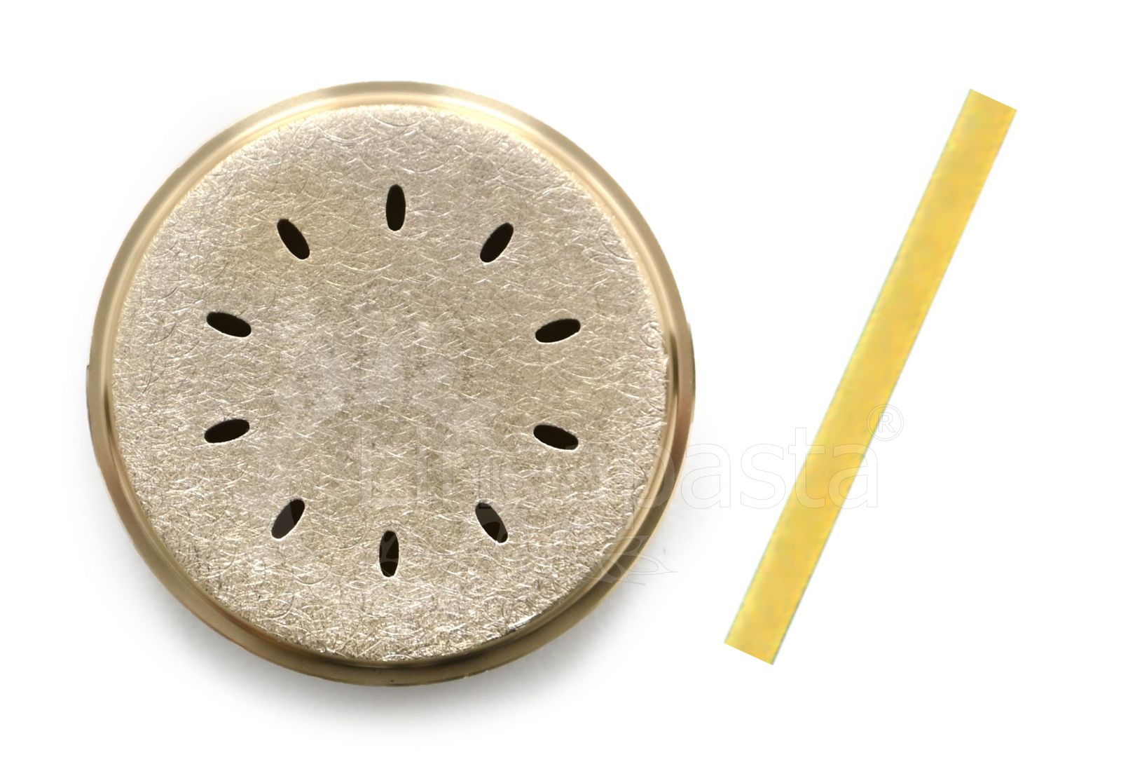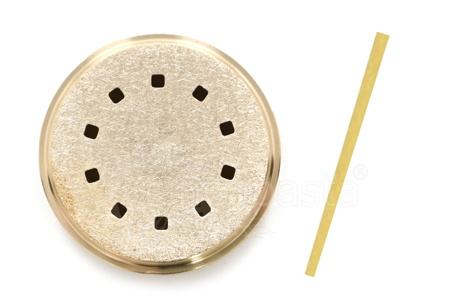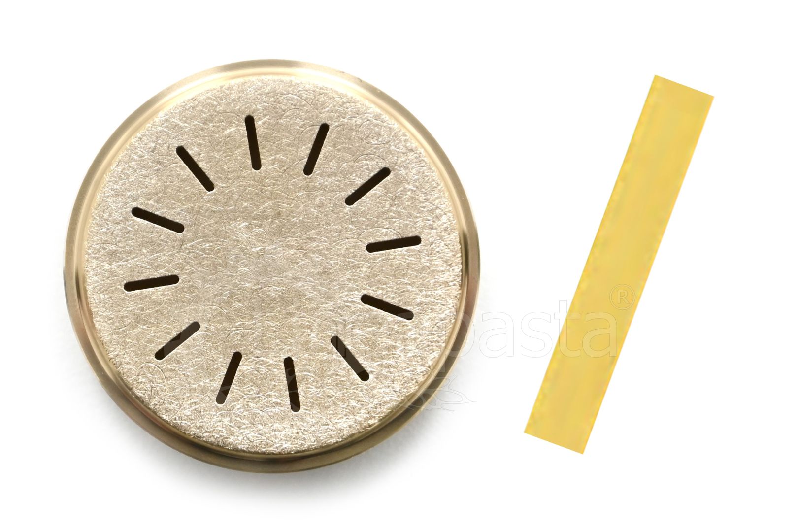 Trafile pasta fresca per l'accessorio torchio Kenwood KAX92.A0ME in ottone-bronzo per la produzione del tipo di pasta a seconda del formato scelto.