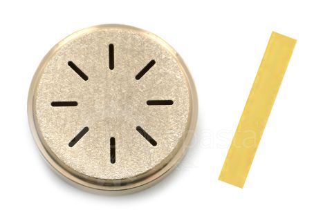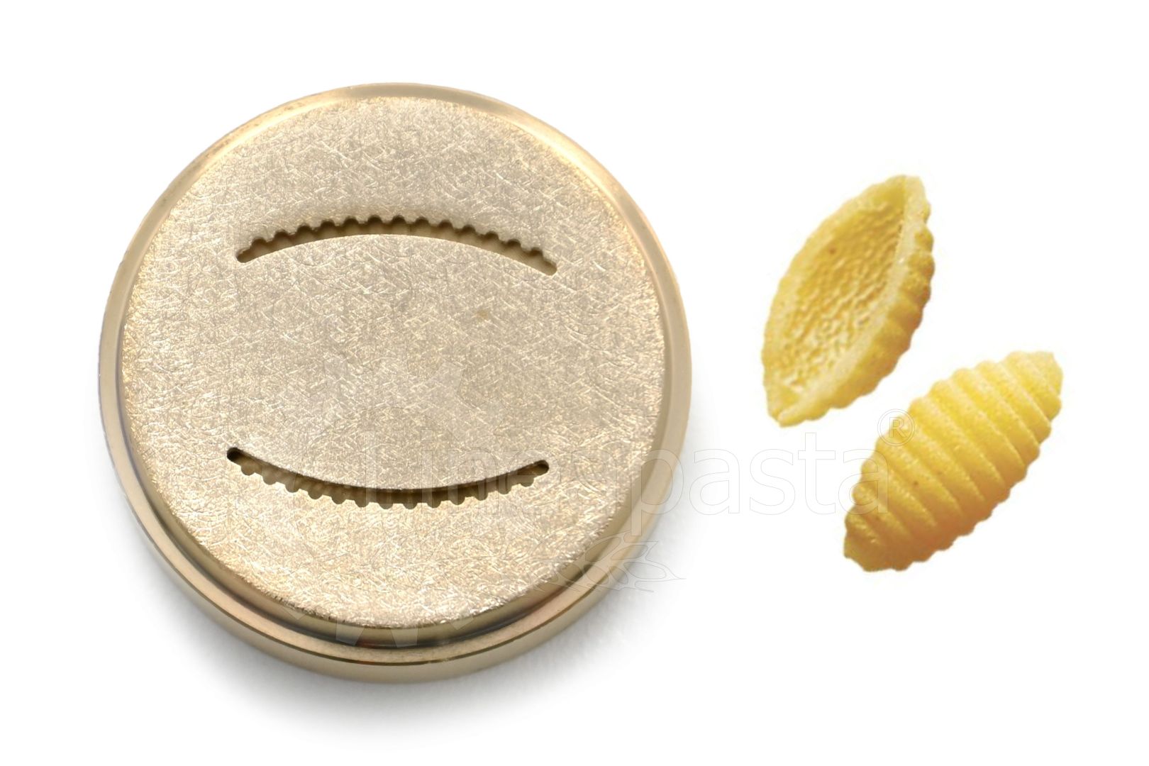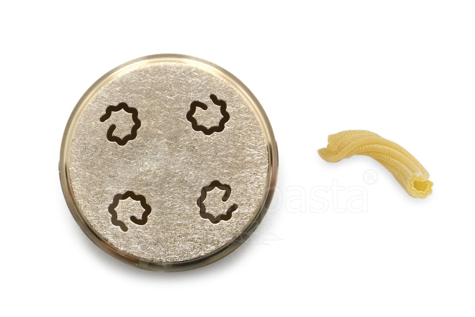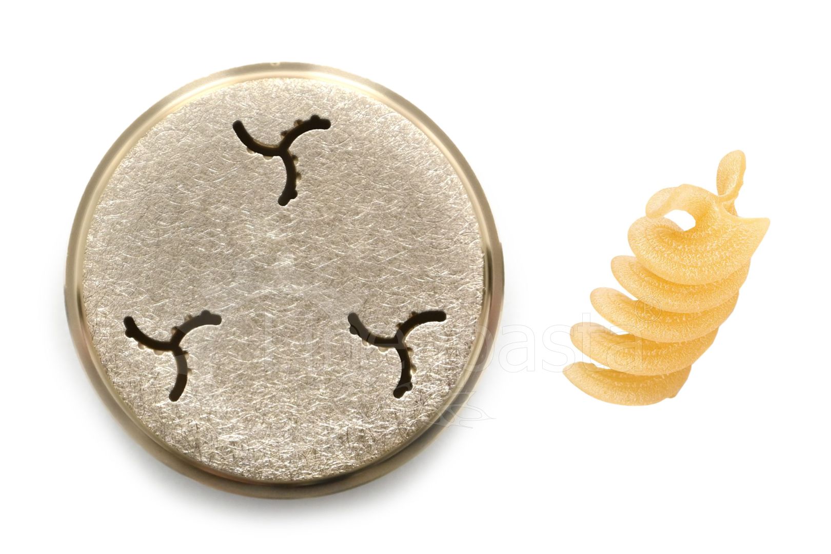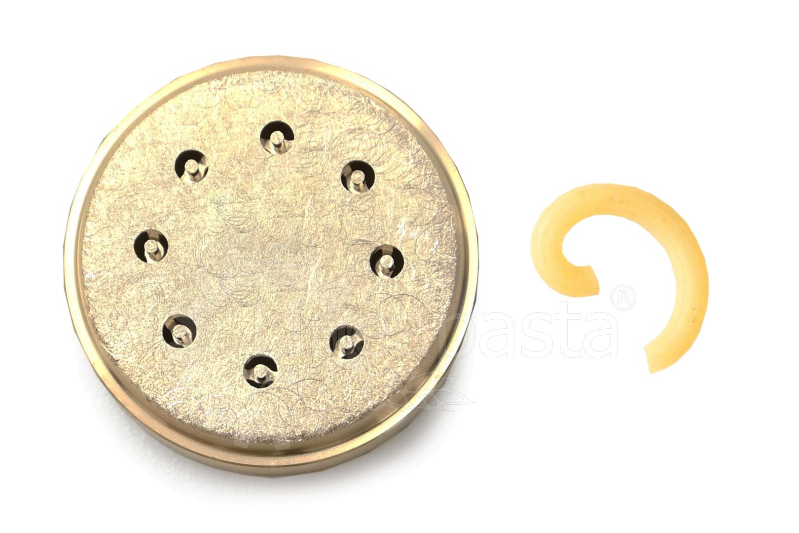Pasta sfoglia 130 mm con spessore regolabile - Pasta sfoglia 105x0,6 mm / 105x0,8 mm / 105x1,2 mm - Biscotti - Bucatini Ø3,6x1,1 mm - Calamarata Ø28x1,5 mm - Canestroni rigati Ø26 mm - Cannelloni Ø28x0,8 mm - Caserecce 9 mm - Cavatelli 24x1 mm - Chicche di patate Ø13 mm - Conchigliette da brodo 13 mm - Conchigliette rigate 18 mm - Conchiglie rigate 32,5 mm - Fiocco di neve 27 mm - Fusilli 3P 6,5 mm / 10 mm - Fusilli calabresi 5,4x1,4 mm - Fusilli rigati 3P 10 mm - Fusilloni giganti 16,5 mm - Gnocchi 24,5 mm - Gnocchi napoletani 26 mm - Gnocchi sardi 24x1 mm - Gramigna Ø3,5 mm - Grissini Ø6 mm / Ø11 mm - Grissini POM Ø6 mm / Ø12 mm - Linguine 3,6x1,5 mm - Linguine rigate 5x2,1 mm - Maccheroni siciliani 7x2 mm - Maccheroni bugiardi Ø11 mm - Mafalde 25,5 mm - Mafaldine 18 mm - Malloreddus 25x1,1 mm - Mezze maniche rigate Ø20 mm - Occhi di lupo rigati Ø15,5 mm - Orecchiette grandi 22 mm - Paccheri lisci Ø25x1,5 mm - Paccheri rigati Ø25x1,5 mm - Pappardelle 14,5x0,6 mm / 14,5x1,15 mm / 20x0,8 mm / 20x1 mm - Pappardelle rigate 14,7 mm - Passatelli Ø7 mm - Penne rigate 10 mm (solo taglio a mano) - Pici toscani Ø4,2 mm - Pizzoccheri 8,5x2 mm - Radiatori 19 mm / 26 mm - Ricciolo 13,5 mm - Rigatoni Ø12x1,1 mm - Rotini 2P 10,8 mm - Ruote a fiore Ø25 mm - Ruote rigate Ø13 mm - Scialatielli 5x3 mm / 5,6x3,6 mm - Sedanini rigati Ø6,5 mm / Ø8,5 mm - Spaghetti alla chitarra 2x2 mm / 2,5x2,5 mm / 3,2x3,2 mm / 4x4 mm - Spaghetti Ø2,5 mm - Spaghettoni Ø3,2 mm - Tagliatelle 6x0,6 mm / 6x0,8 mm / 6x1 mm / 7x1,3 mm / 8x0,6 mm / 8x0,8 mm / 8x1 mm - Tagliolini 3x1 mm - Torchietti 9x1,1 mm - Treccia 8,5 mm - Tripoline 10,8 mm - Ziti lisci Ø7,3x1,15 mm