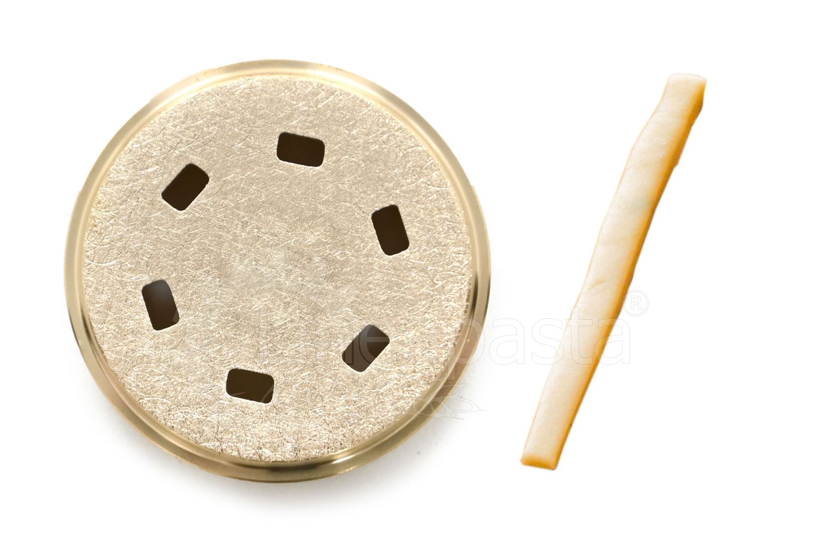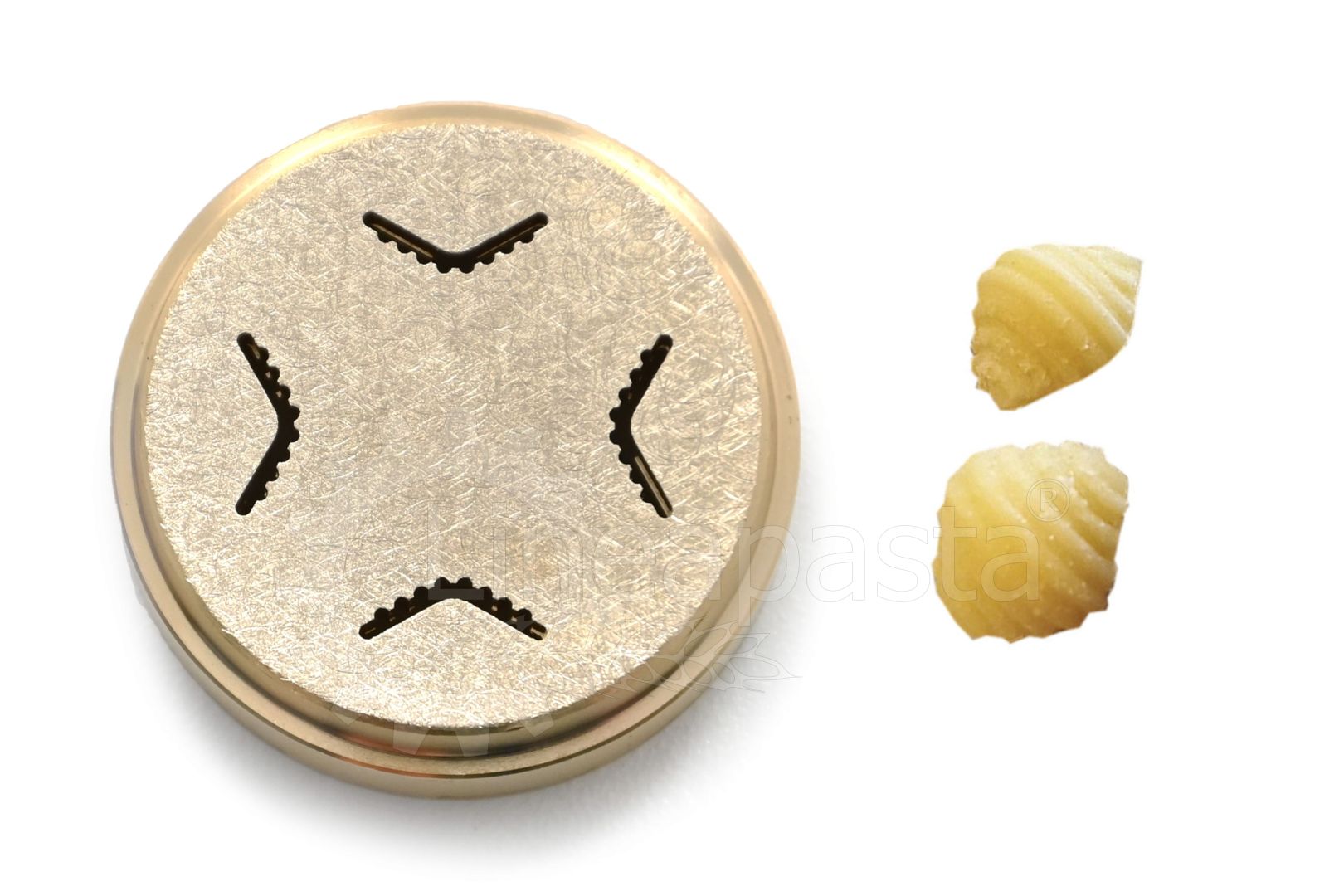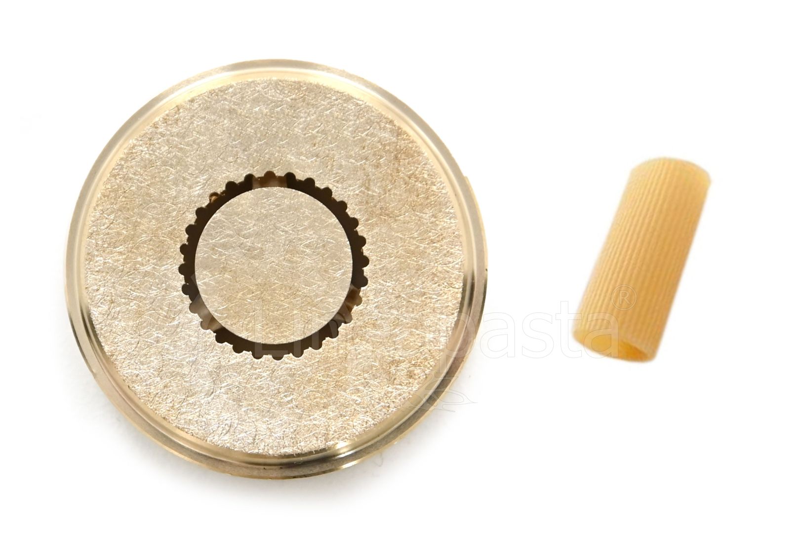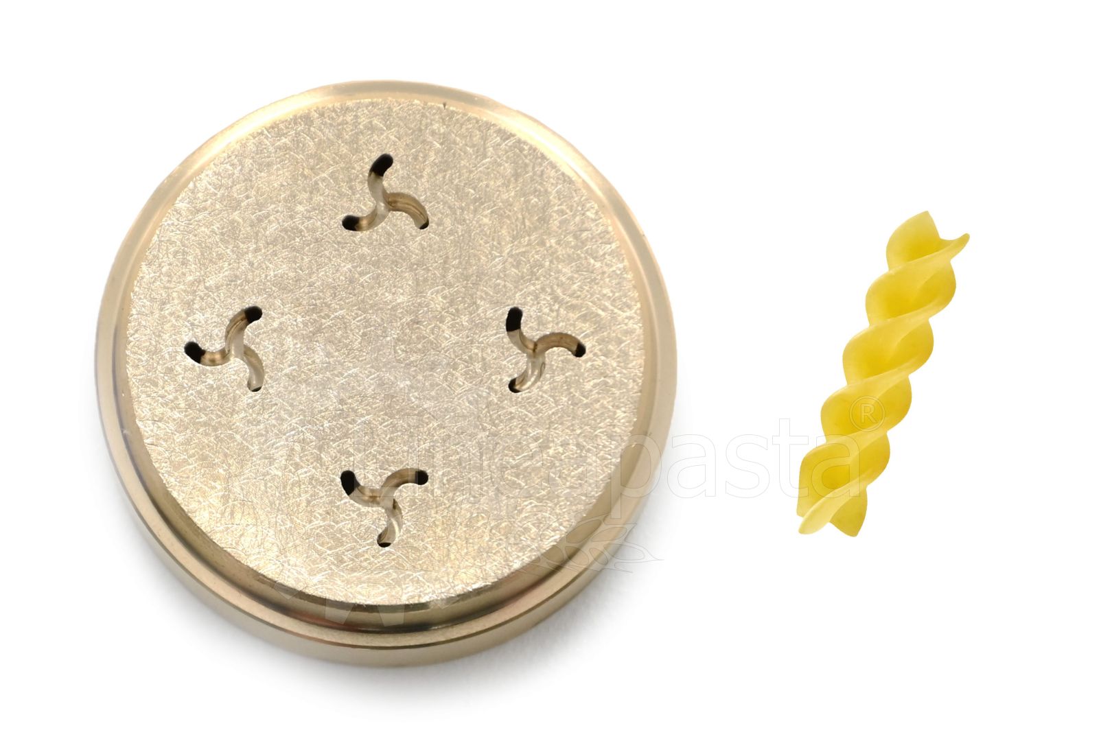 Pasta sfoglia 130 mm con spessore regolabile - Pasta sfoglia 105x0,6 mm / 105x0,8 mm / 105x1,2 mm - Biscotti - Bucatini Ø3,6x1,1 mm - Calamarata Ø28x1,5 mm - Canestroni rigati Ø26 mm - Cannelloni Ø28x0,8 mm - Caserecce 9 mm - Cavatelli 24x1 mm - Chicche di patate Ø13 mm - Conchigliette da brodo 13 mm - Conchigliette rigate 18 mm - Conchiglie rigate 32,5 mm - Fiocco di neve 27 mm - Fusilli 3P 6,5 mm / 10 mm - Fusilli calabresi 5,4x1,4 mm - Fusilli rigati 3P 10 mm - Fusilloni giganti 16,5 mm - Gnocchi 24,5 mm - Gnocchi napoletani 26 mm - Gnocchi sardi 24x1 mm - Gramigna Ø3,5 mm - Grissini Ø6 mm / Ø11 mm - Grissini POM Ø6 mm / Ø12 mm - Linguine 3,6x1,5 mm - Linguine rigate 5x2,1 mm - Maccheroni siciliani 7x2 mm - Maccheroni bugiardi Ø11 mm - Mafalde 25,5 mm - Mafaldine 18 mm - Malloreddus 25x1,1 mm - Mezze maniche rigate Ø20 mm - Occhi di lupo rigati Ø15,5 mm - Orecchiette grandi 22 mm - Paccheri lisci Ø25x1,5 mm - Paccheri rigati Ø25x1,5 mm - Pappardelle 14,5x0,6 mm / 14,5x1,15 mm / 20x0,8 mm / 20x1 mm - Pappardelle rigate 14,7 mm - Passatelli Ø7 mm - Penne rigate 10 mm (solo taglio a mano) - Pici toscani Ø4,2 mm - Pizzoccheri 8,5x2 mm - Radiatori 19 mm / 26 mm - Ricciolo 13,5 mm - Rigatoni Ø12x1,1 mm - Rotini 2P 10,8 mm - Ruote a fiore Ø25 mm - Ruote rigate Ø13 mm - Scialatielli 5x3 mm / 5,6x3,6 mm - Sedanini rigati Ø6,5 mm / Ø8,5 mm - Spaghetti alla chitarra 2x2 mm / 2,5x2,5 mm / 3,2x3,2 mm / 4x4 mm - Spaghetti Ø2,5 mm - Spaghettoni Ø3,2 mm - Tagliatelle 6x0,6 mm / 6x0,8 mm / 6x1 mm / 7x1,3 mm / 8x0,6 mm / 8x0,8 mm / 8x1 mm - Tagliolini 3x1 mm - Torchietti 9x1,1 mm - Treccia 8,5 mm - Tripoline 10,8 mm - Ziti lisci Ø7,3x1,15 mm