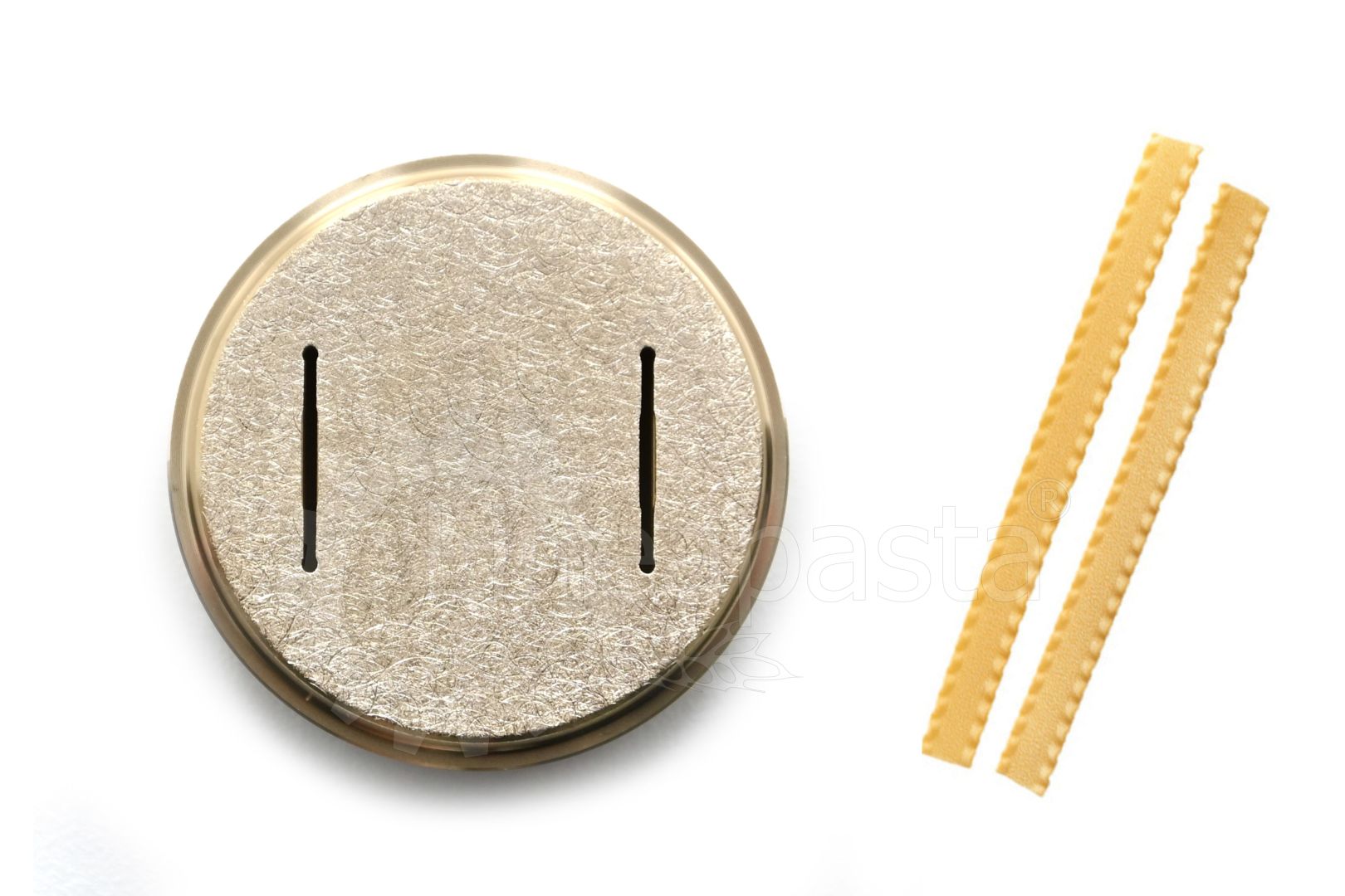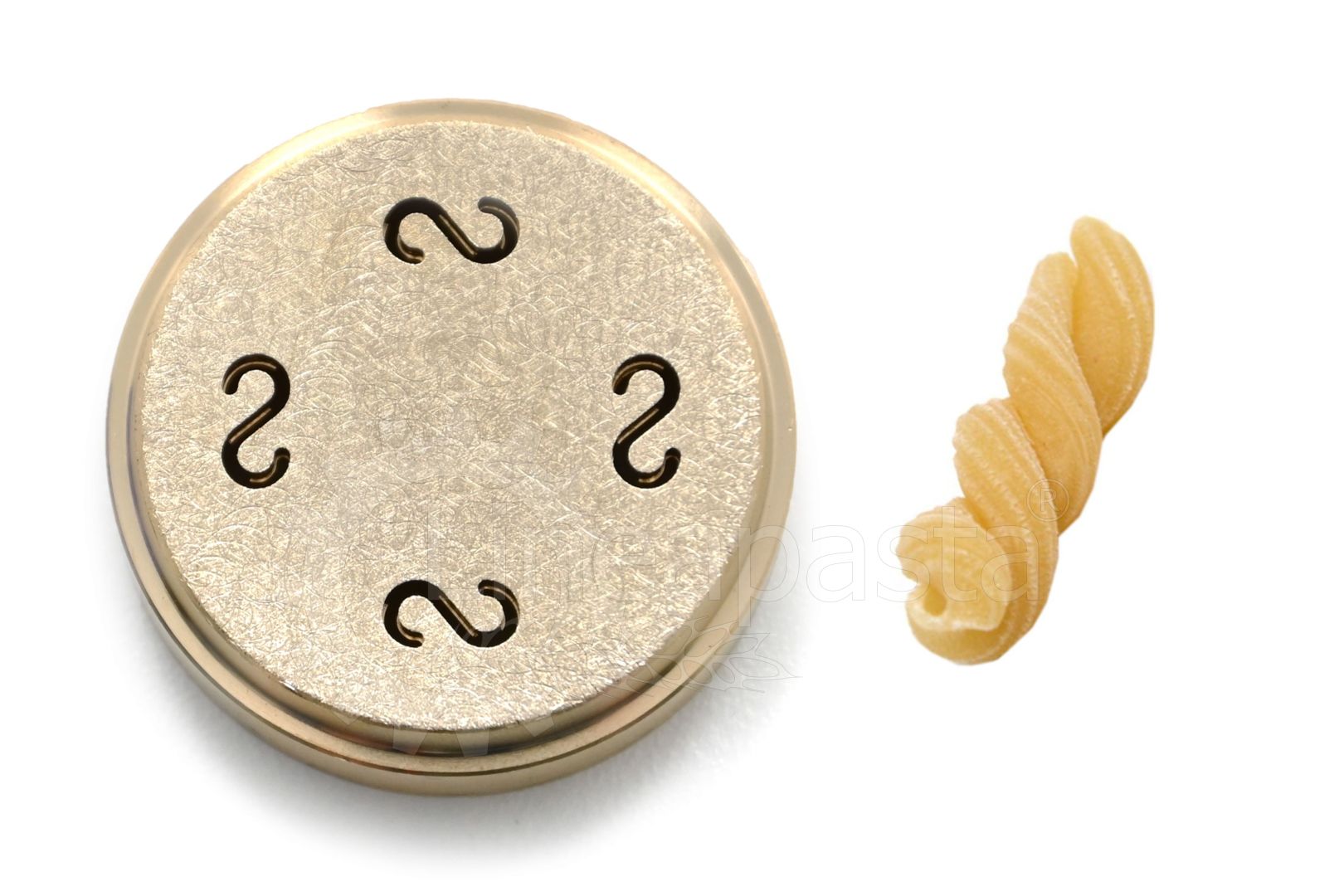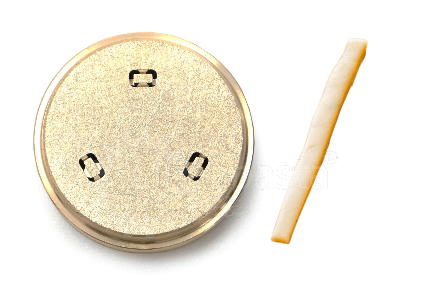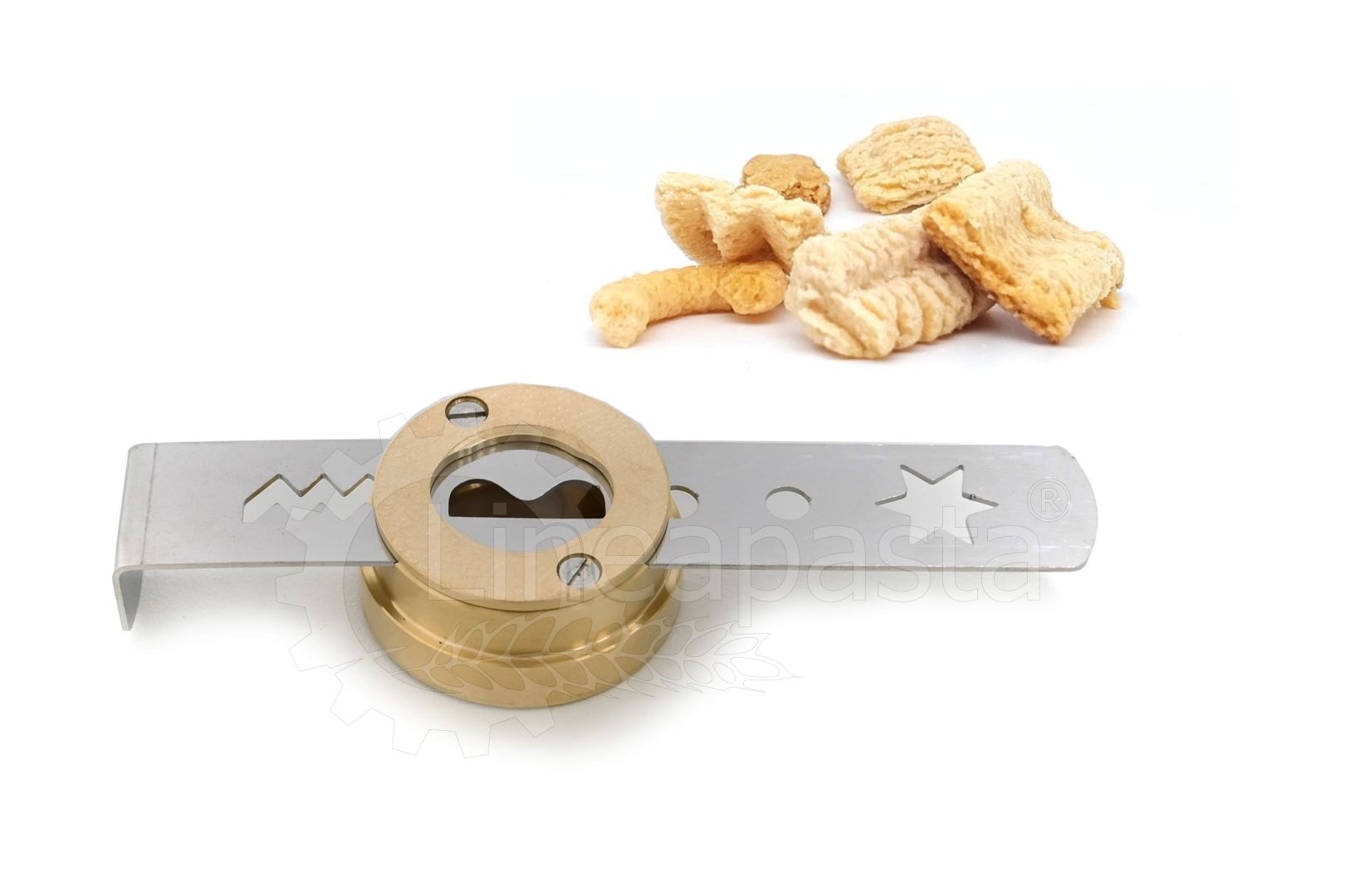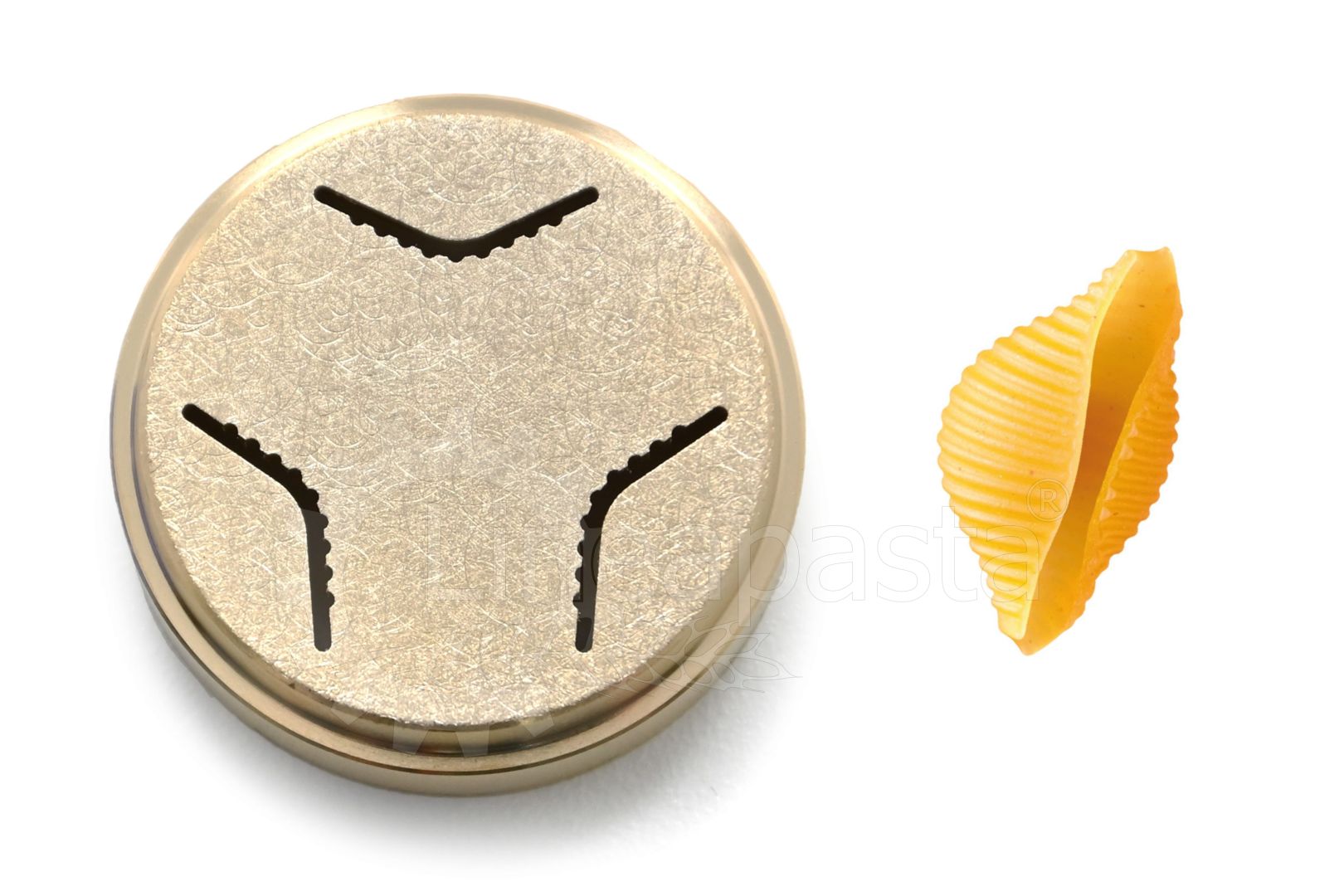 Pasta sfoglia 130 mm con spessore regolabile - Pasta sfoglia 105x0,6 mm / 105x0,8 mm / 105x1,2 mm - Biscotti - Bucatini Ø3,6x1,1 mm - Calamarata Ø28x1,5 mm - Canestroni rigati Ø26 mm - Cannelloni Ø28x0,8 mm - Caserecce 9 mm - Cavatelli 24x1 mm - Chicche di patate Ø13 mm - Conchigliette da brodo 13 mm - Conchigliette rigate 18 mm - Conchiglie rigate 32,5 mm - Fiocco di neve 27 mm - Fusilli 3P 6,5 mm / 10 mm - Fusilli calabresi 5,4x1,4 mm - Fusilli rigati 3P 10 mm - Fusilloni giganti 16,5 mm - Gnocchi 24,5 mm - Gnocchi napoletani 26 mm - Gnocchi sardi 24x1 mm - Gramigna Ø3,5 mm - Grissini Ø6 mm / Ø11 mm - Grissini POM Ø6 mm / Ø12 mm - Linguine 3,6x1,5 mm - Linguine rigate 5x2,1 mm - Maccheroni siciliani 7x2 mm - Maccheroni bugiardi Ø11 mm - Mafalde 25,5 mm - Mafaldine 18 mm - Malloreddus 25x1,1 mm - Mezze maniche rigate Ø20 mm - Occhi di lupo rigati Ø15,5 mm - Orecchiette grandi 22 mm - Paccheri lisci Ø25x1,5 mm - Paccheri rigati Ø25x1,5 mm - Pappardelle 14,5x0,6 mm / 14,5x1,15 mm / 20x0,8 mm / 20x1 mm - Pappardelle rigate 14,7 mm - Passatelli Ø7 mm - Penne rigate 10 mm (solo taglio a mano) - Pici toscani Ø4,2 mm - Pizzoccheri 8,5x2 mm - Radiatori 19 mm / 26 mm - Ricciolo 13,5 mm - Rigatoni Ø12x1,1 mm - Rotini 2P 10,8 mm - Ruote a fiore Ø25 mm - Ruote rigate Ø13 mm - Scialatielli 5x3 mm / 5,6x3,6 mm - Sedanini rigati Ø6,5 mm / Ø8,5 mm - Spaghetti alla chitarra 2x2 mm / 2,5x2,5 mm / 3,2x3,2 mm / 4x4 mm - Spaghetti Ø2,5 mm - Spaghettoni Ø3,2 mm - Tagliatelle 6x0,6 mm / 6x0,8 mm / 6x1 mm / 7x1,3 mm / 8x0,6 mm / 8x0,8 mm / 8x1 mm - Tagliolini 3x1 mm - Torchietti 9x1,1 mm - Treccia 8,5 mm - Tripoline 10,8 mm - Ziti lisci Ø7,3x1,15 mm