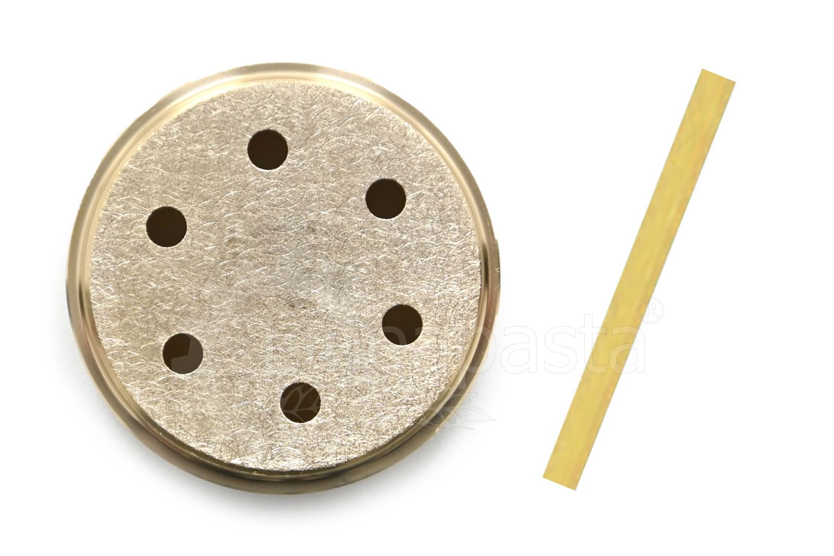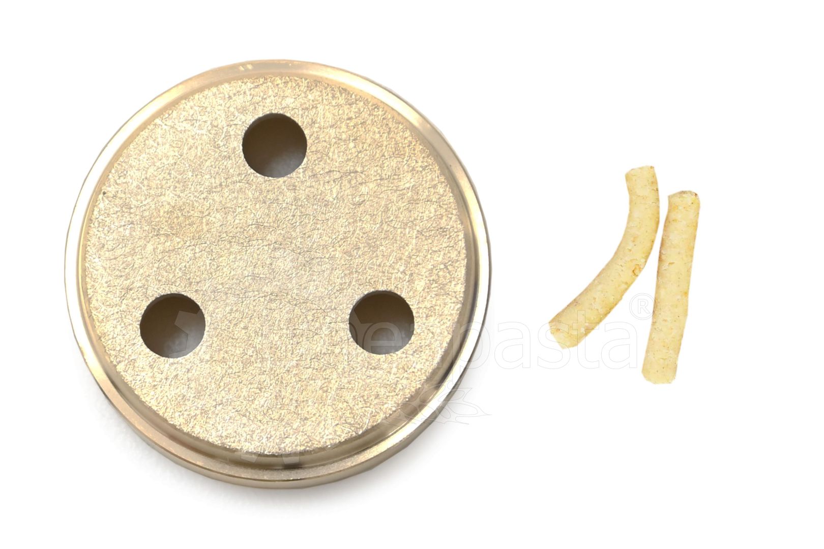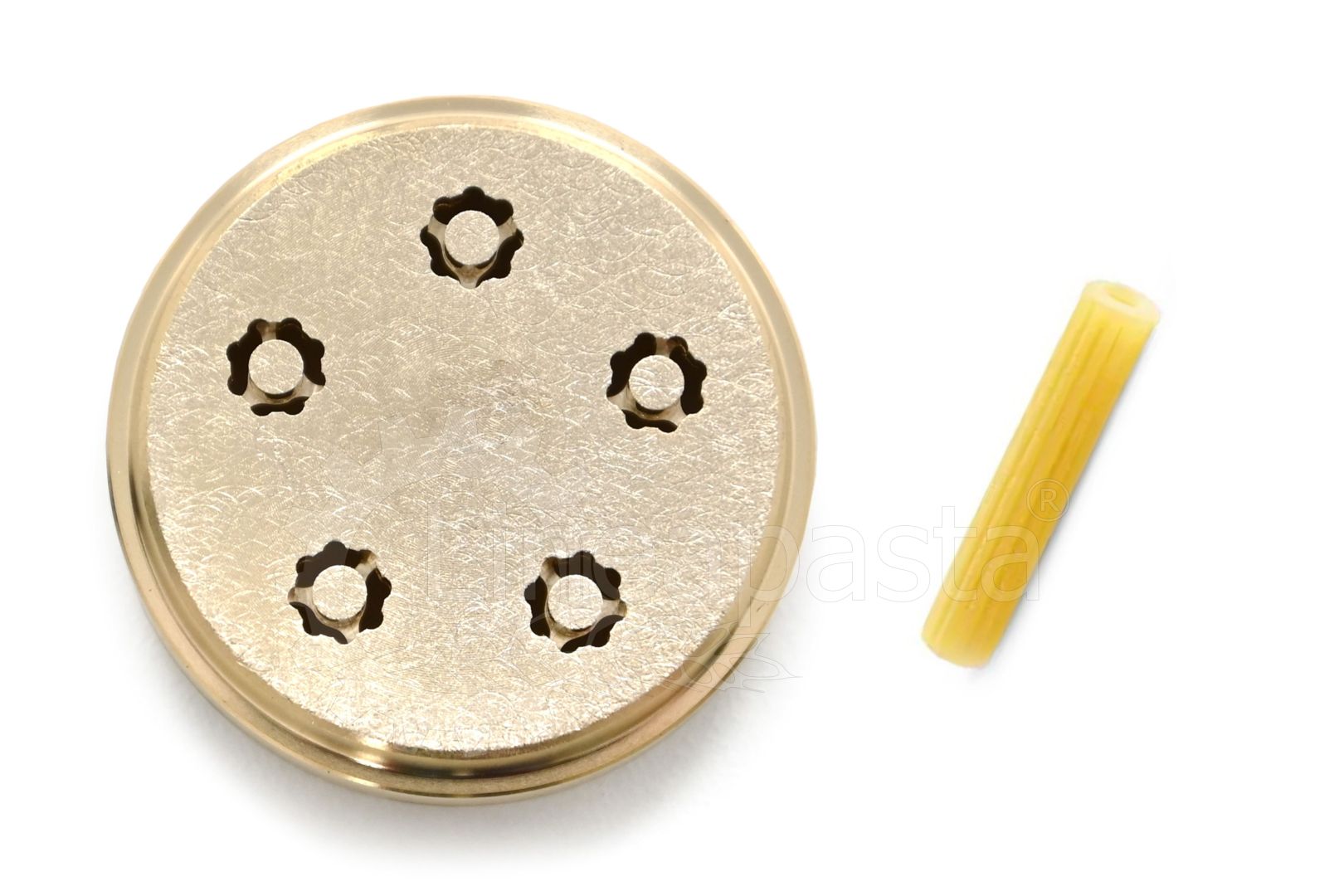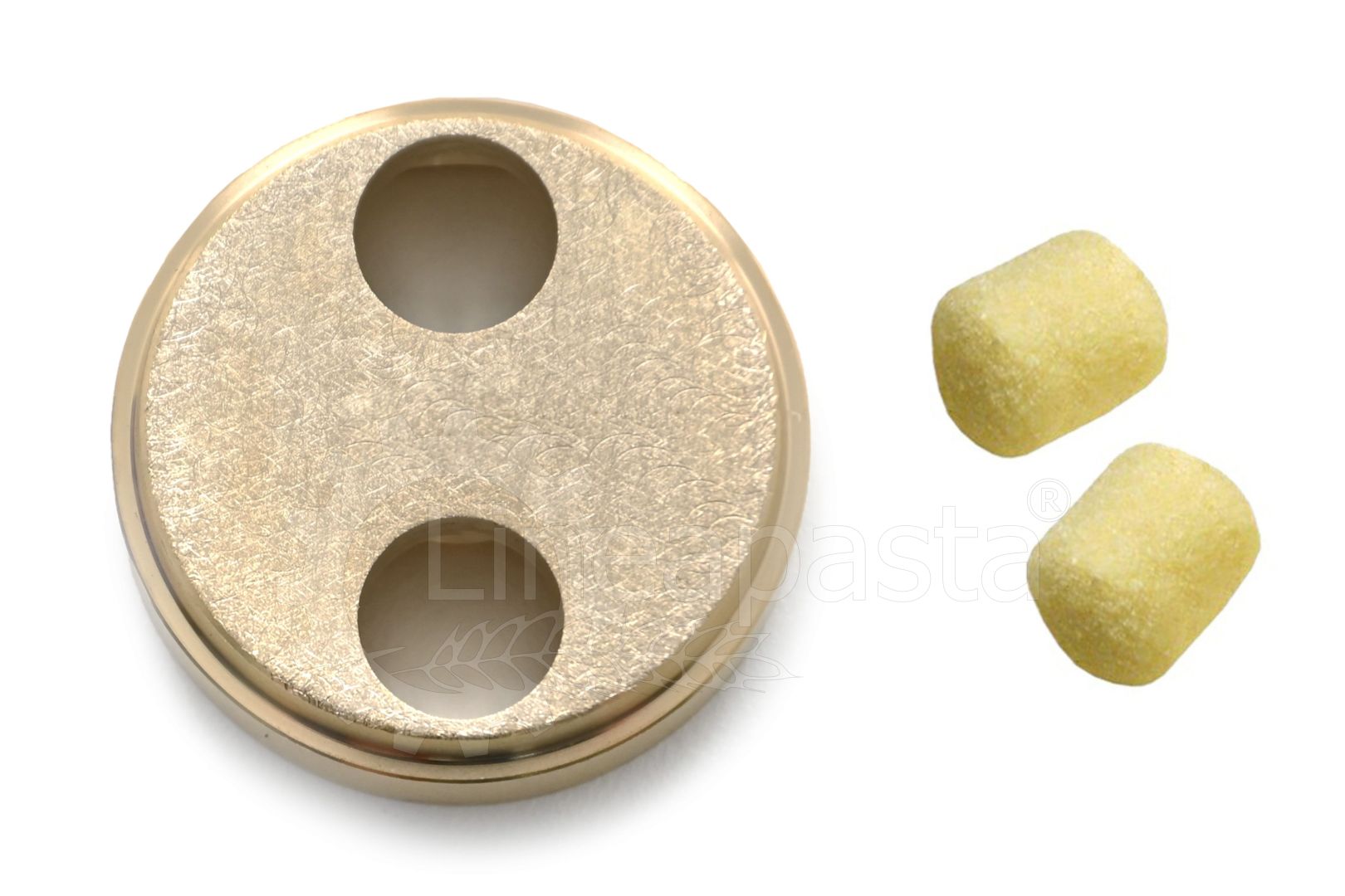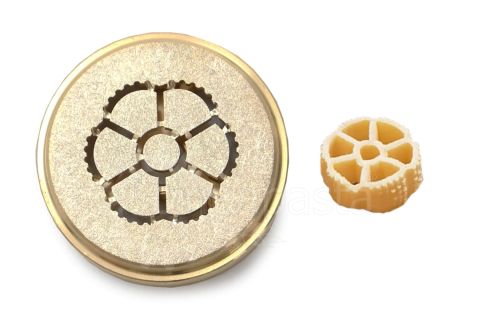 Pasta sfoglia 130 mm con spessore regolabile - Pasta sfoglia 105x0,6 mm / 105x0,8 mm / 105x1,2 mm - Biscotti - Bucatini Ø3,6x1,1 mm - Calamarata Ø28x1,5 mm - Canestroni rigati Ø26 mm - Cannelloni Ø28x0,8 mm - Caserecce 9 mm - Cavatelli 24x1 mm - Chicche di patate Ø13 mm - Conchigliette da brodo 13 mm - Conchigliette rigate 18 mm - Conchiglie rigate 32,5 mm - Fiocco di neve 27 mm - Fusilli 3P 6,5 mm / 10 mm - Fusilli calabresi 5,4x1,4 mm - Fusilli rigati 3P 10 mm - Fusilloni giganti 16,5 mm - Gnocchi 24,5 mm - Gnocchi napoletani 26 mm - Gnocchi sardi 24x1 mm - Gramigna Ø3,5 mm - Grissini Ø6 mm / Ø11 mm - Grissini POM Ø6 mm / Ø12 mm - Linguine 3,6x1,5 mm - Linguine rigate 5x2,1 mm - Maccheroni siciliani 7x2 mm - Maccheroni bugiardi Ø11 mm - Mafalde 25,5 mm - Mafaldine 18 mm - Malloreddus 25x1,1 mm - Mezze maniche rigate Ø20 mm - Occhi di lupo rigati Ø15,5 mm - Orecchiette grandi 22 mm - Paccheri lisci Ø25x1,5 mm - Paccheri rigati Ø25x1,5 mm - Pappardelle 14,5x0,6 mm / 14,5x1,15 mm / 20x0,8 mm / 20x1 mm - Pappardelle rigate 14,7 mm - Passatelli Ø7 mm - Penne rigate 10 mm (solo taglio a mano) - Pici toscani Ø4,2 mm - Pizzoccheri 8,5x2 mm - Radiatori 19 mm / 26 mm - Ricciolo 13,5 mm - Rigatoni Ø12x1,1 mm - Rotini 2P 10,8 mm - Ruote a fiore Ø25 mm - Ruote rigate Ø13 mm - Scialatielli 5x3 mm / 5,6x3,6 mm - Sedanini rigati Ø6,5 mm / Ø8,5 mm - Spaghetti alla chitarra 2x2 mm / 2,5x2,5 mm / 3,2x3,2 mm / 4x4 mm - Spaghetti Ø2,5 mm - Spaghettoni Ø3,2 mm - Tagliatelle 6x0,6 mm / 6x0,8 mm / 6x1 mm / 7x1,3 mm / 8x0,6 mm / 8x0,8 mm / 8x1 mm - Tagliolini 3x1 mm - Torchietti 9x1,1 mm - Treccia 8,5 mm - Tripoline 10,8 mm - Ziti lisci Ø7,3x1,15 mm