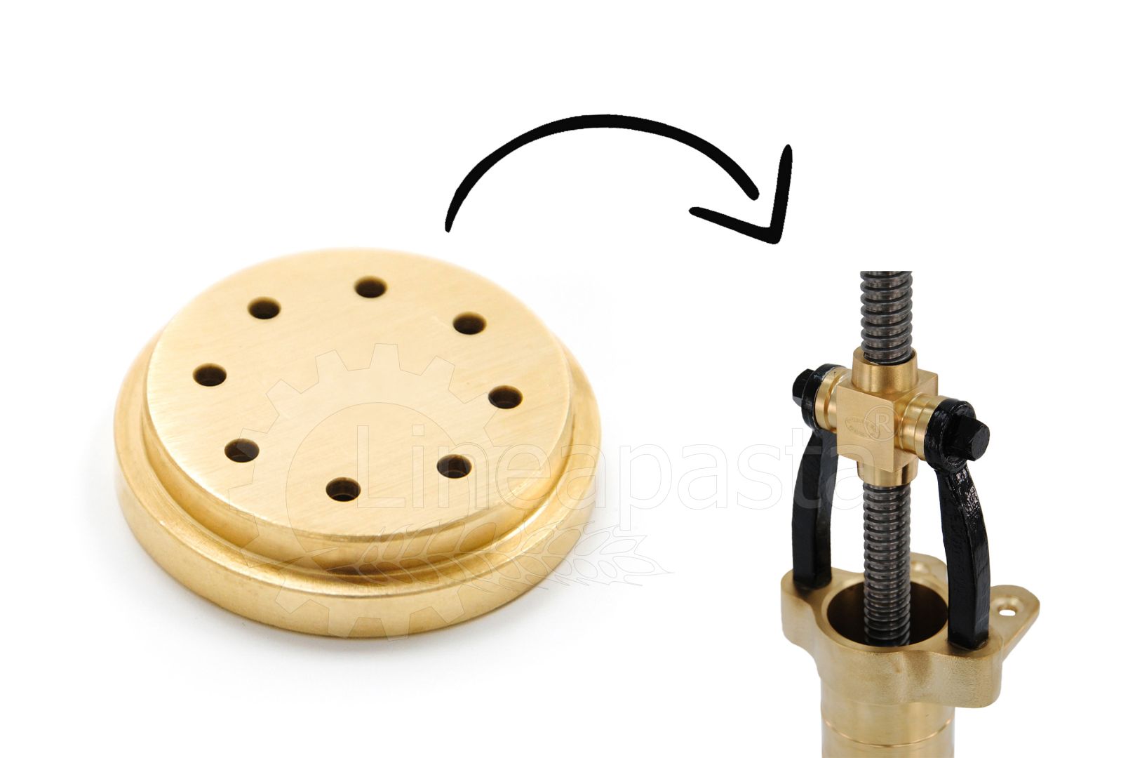 Trafile in ottone-bronzo per pasta fresca per Torchio Bigolaro 7, per la produzione del tipo di pasta a seconda del formato scelto.