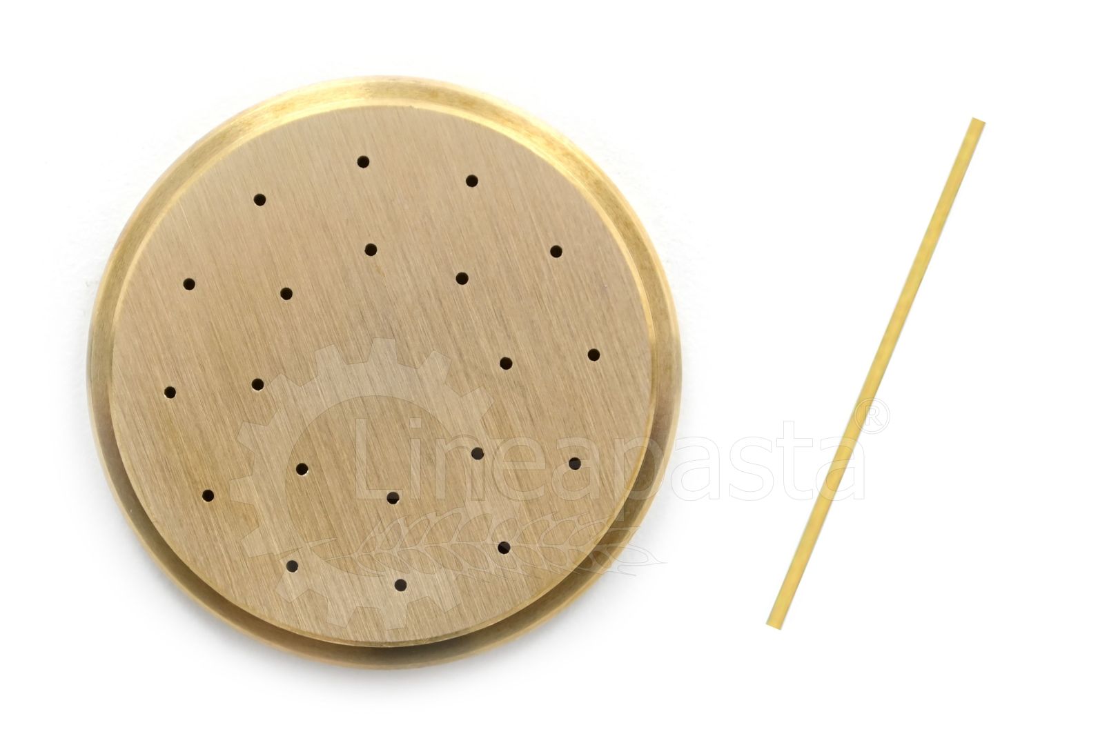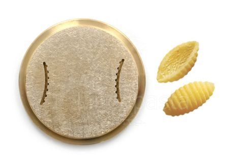 Pasta sfoglia 130 mm con spessore regolabile - Amori 7,8 mm (inserti in teflon) - Bigoli Ø3 mm - Bucatini Ø3 mm / Ø4 mm - Amori 7,8 mm - Caserecce 8,8x5 mm / 9x5 mm - Fusilli 3P 9 mm - Linguine 3x1,6 mm - Orecchiette 22 mm - Canestrini Ø16 mm - Cannellone Ø25 mm - Capelli d'angelo Ø1 mm - Conchiglie rigate 32,5 mm - Creste di gallo rigate 7 mm - Cuore rigato Ø14 mm - Fiore di loto Ø20 mm - Fusilli 2P 13 mm - Fusilloni 5P 20 mm - Giglio riccio 11,5 mm - Gnocchetto sardo 19 mm - Gnocchi Ø12 mm (solo con farina di patata liofilizzata) - Gnocco napoletano 22 mm - Gramigna Ø3,5 mm - Linguine 4x1,6 mm - Maccheroni rigati Ø4,8 mm / Ø8,5 mm / Ø11 mm / Ø15 mm - Pacchero Ø25x1,5 mm - Pappardelle 16 mm / 17 mm - Pappardelle ricce 16 mm - Pici Toscani/Spaghettoni Ø4 mm - Radiatori 26 mm - Ruote rigate 12 mm - Scialatielli 5x3 mm - Spaghetti Ø1,5 mm / Ø1,7 mm / Ø2 mm - Spaghetti alla chitarra 2x2 mm - Stella 5 punte Ø20 mm - Tagliatelle 5 mm / 6 mm - Tagliolini 3 mm - Trottola liscia 12 mm - Ziti lisci Ø8 mm