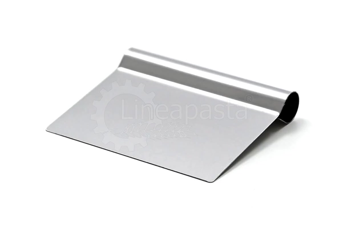 Raschietto tagliapasta in acciaio inox ideale per tagliare la pasta manualmente in estrusione oppure per pulire il tagliere o il ripiano da lavoro durante la fase di lavorazione degli alimenti. Di materiale durevole e robusto, questo strumento largo 116 mm presenta dei bordi affilati che possono essere utilizzati anche come tagliapasta e taglia gnocchi.