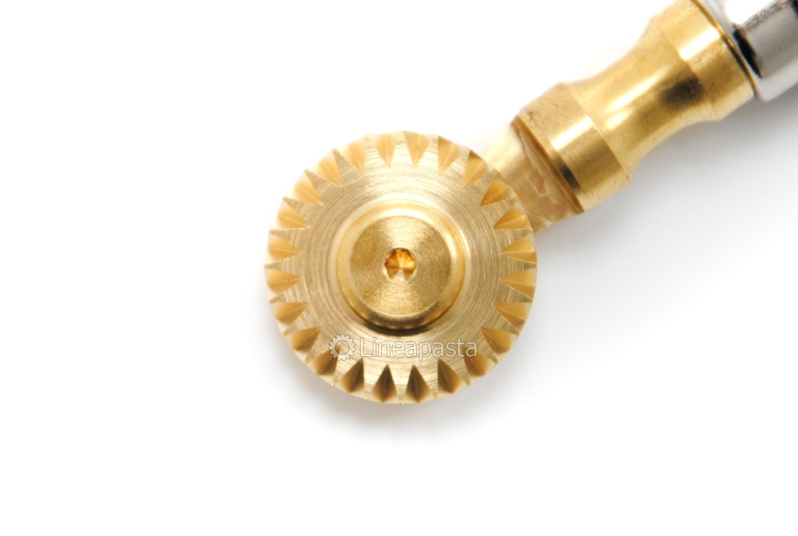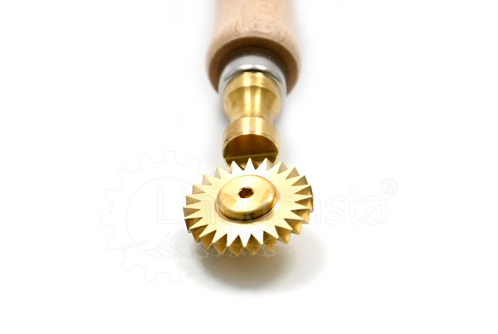 Spronella tagliapasta a rotella dentata robusto e maneggevole, ideale sia per uso casalingo che professionale. La spronella è composta da un manico in legno e una lama singola dentata di diametro 30mm, che permette un taglio pulito e preciso della sfoglia.
