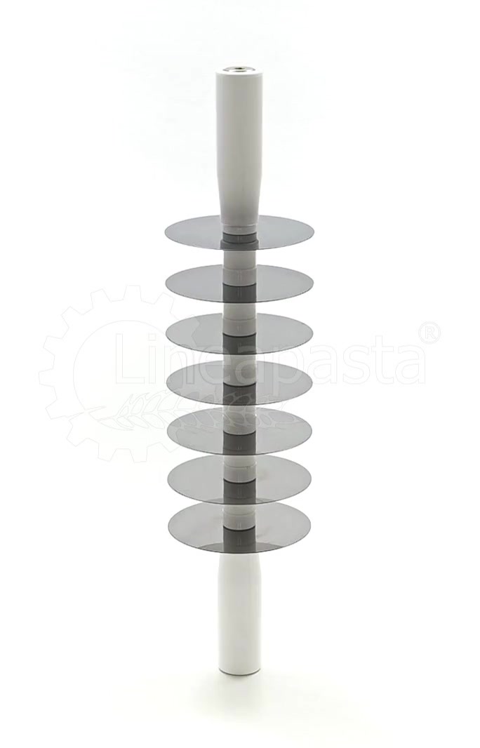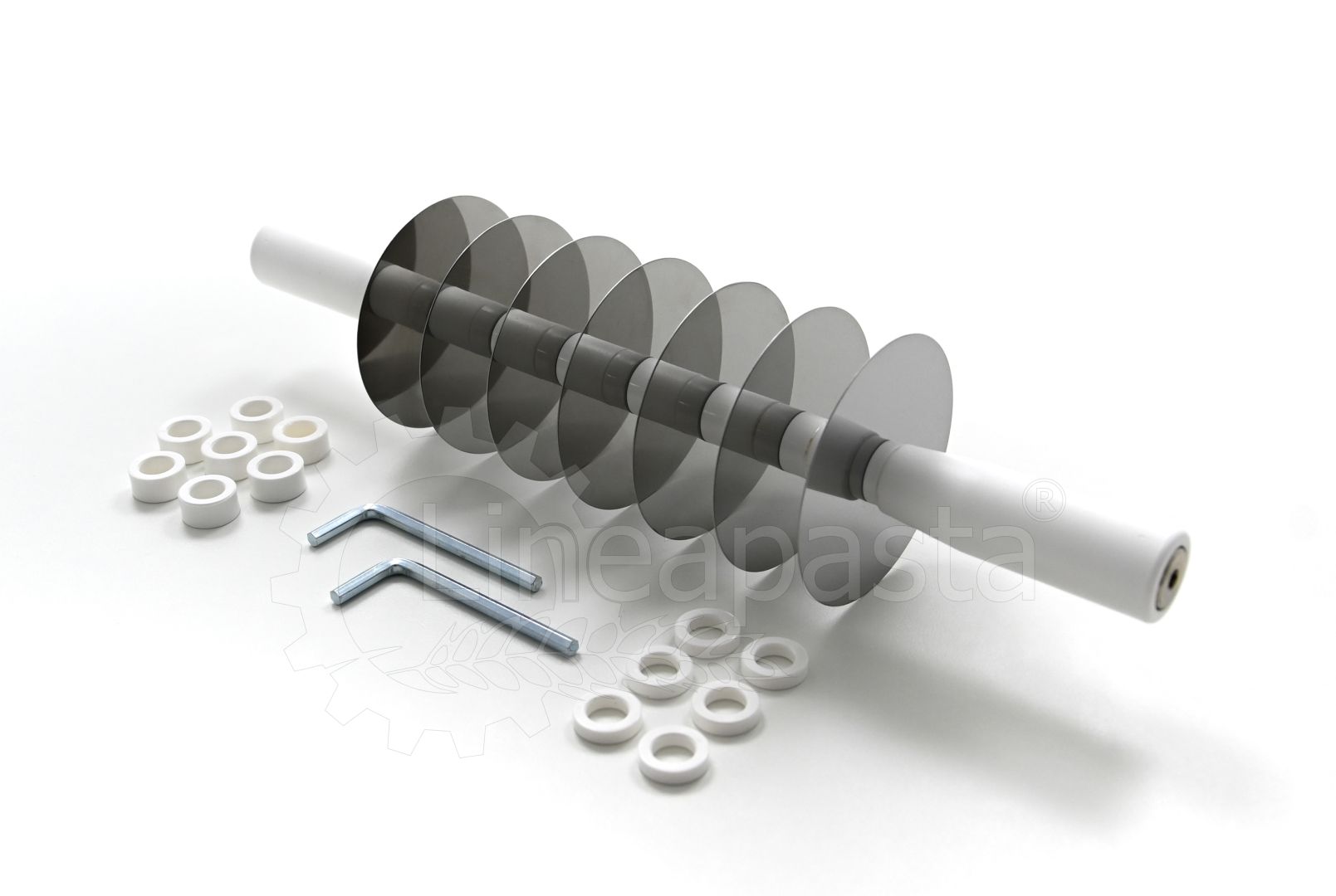 Rullo tagliasfoglia per uso professionale formato da sette lame lisce da 88 mm di diametro in acciaio inox e manici in derlin. Il rullo taglia sfoglia può essere personalizzato fino a un massimo di undici combinazioni di taglio diverse grazie a ventisei distanziali in derlin e due comode brugole fornite in dotazione.